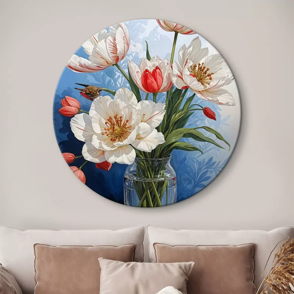 Okrągły obraz Wazon z dużymi białymi kwiatami Nr r38831
