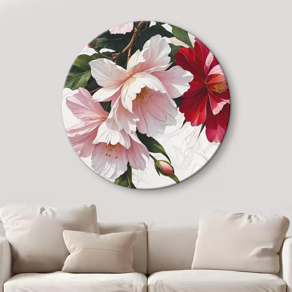 Okrągły obraz Gałąź z dużymi kwiatami Nr r38833