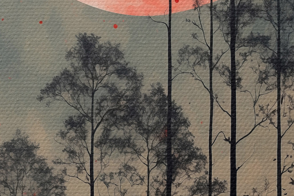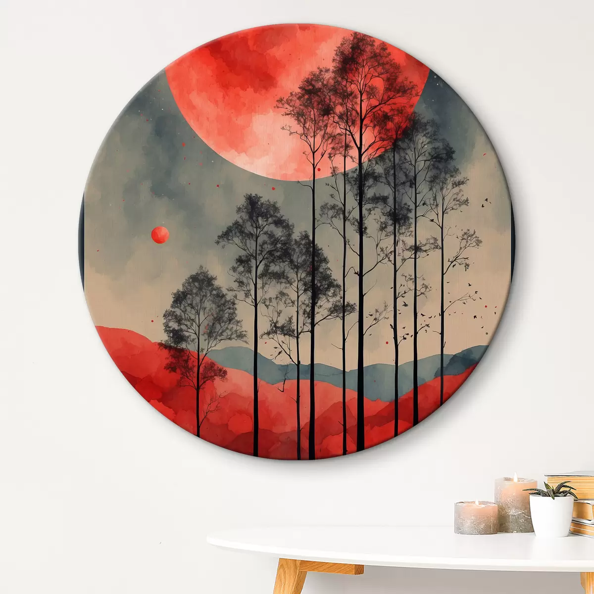Okrągły obraz Krwawy księżyc w pełni nad lasem Nr r38862
