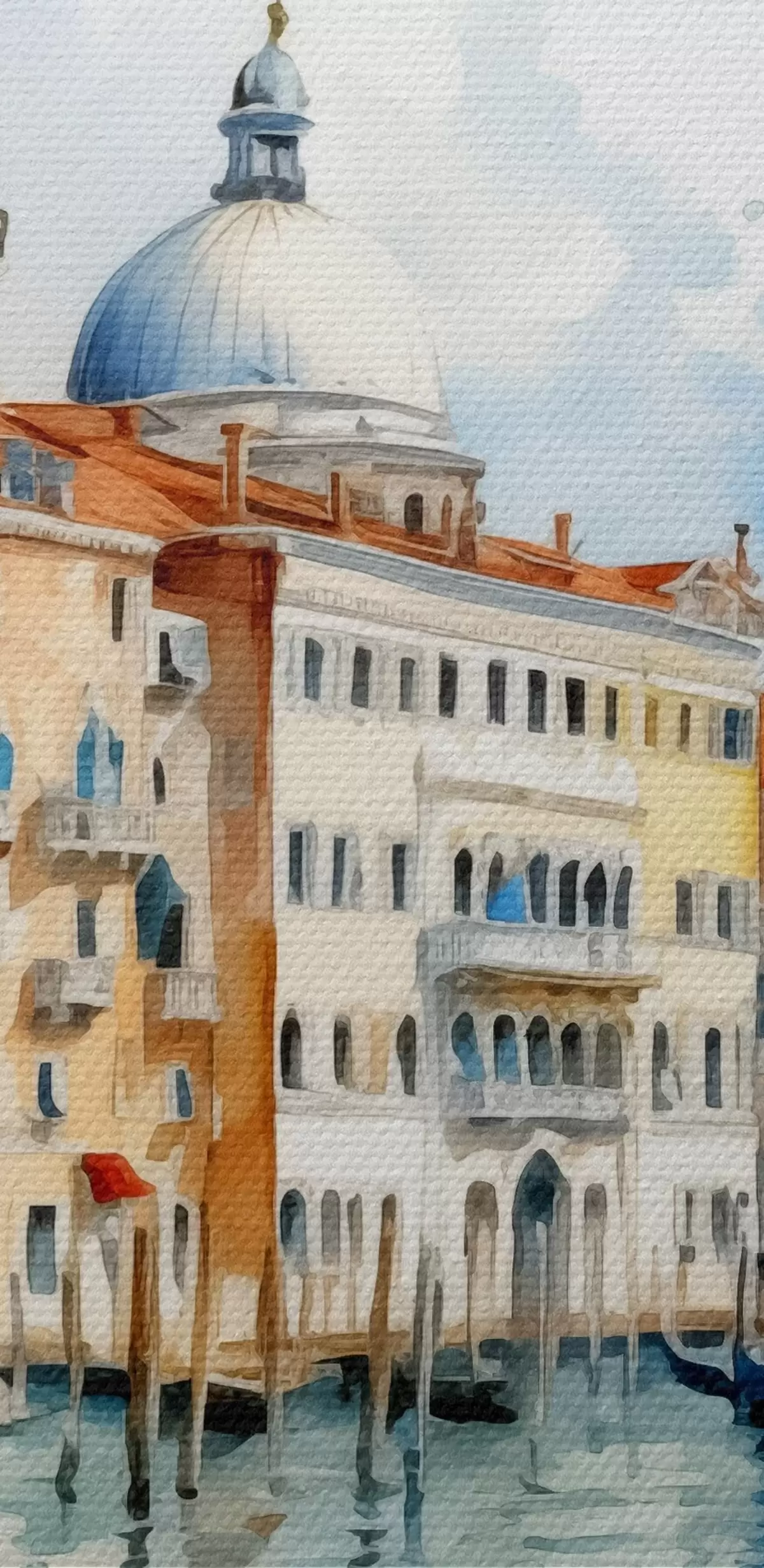 Okrągły obraz Akwarela krajobraz Wenecja, zatoka, rzeka, architektura, krajobraz, łodzie, gondola Nr r38908