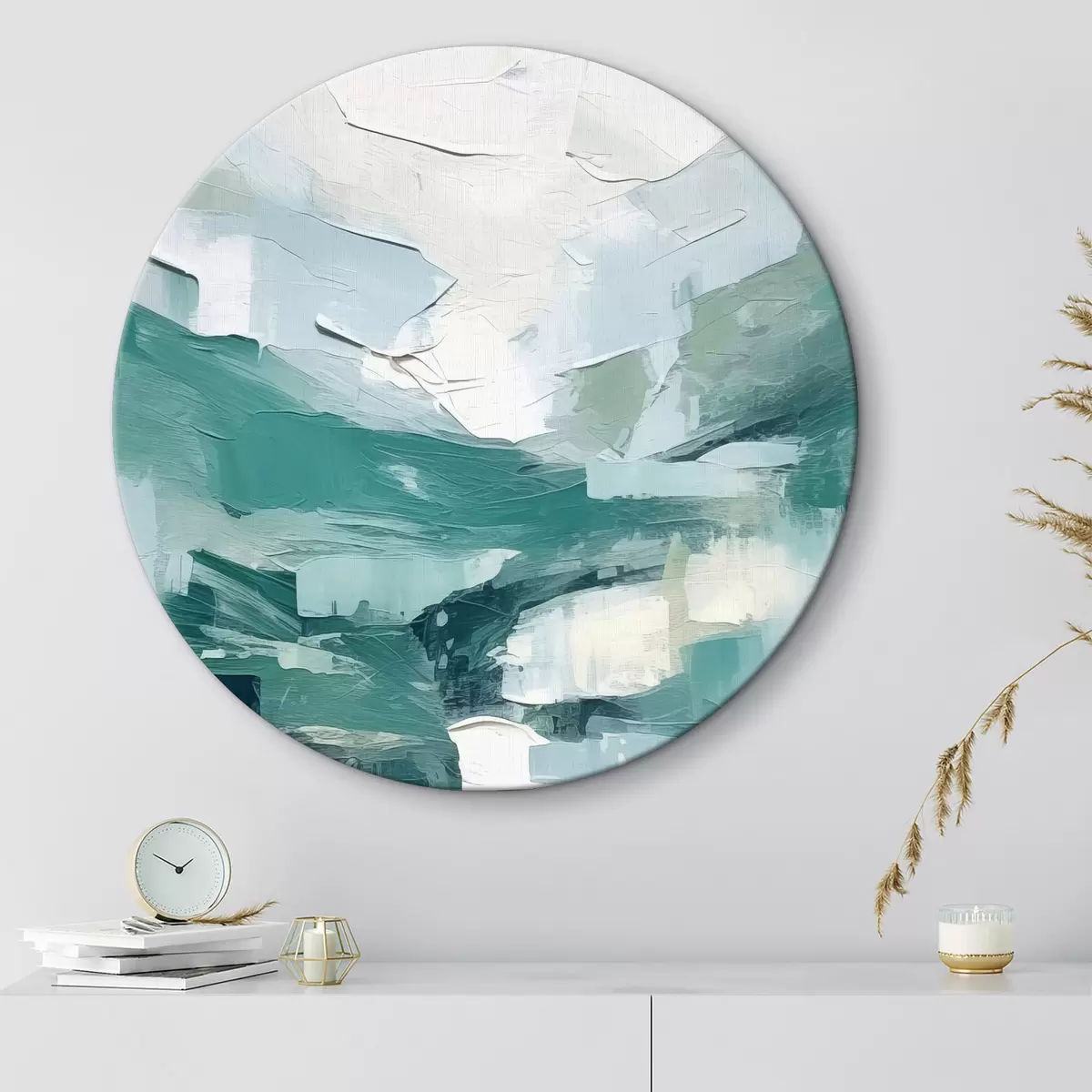Okrągły obraz Abstrakcja niebieskich i białych dużych pociągnięć, imitacja malarstwa olejnego, minimalizm Nr r38915