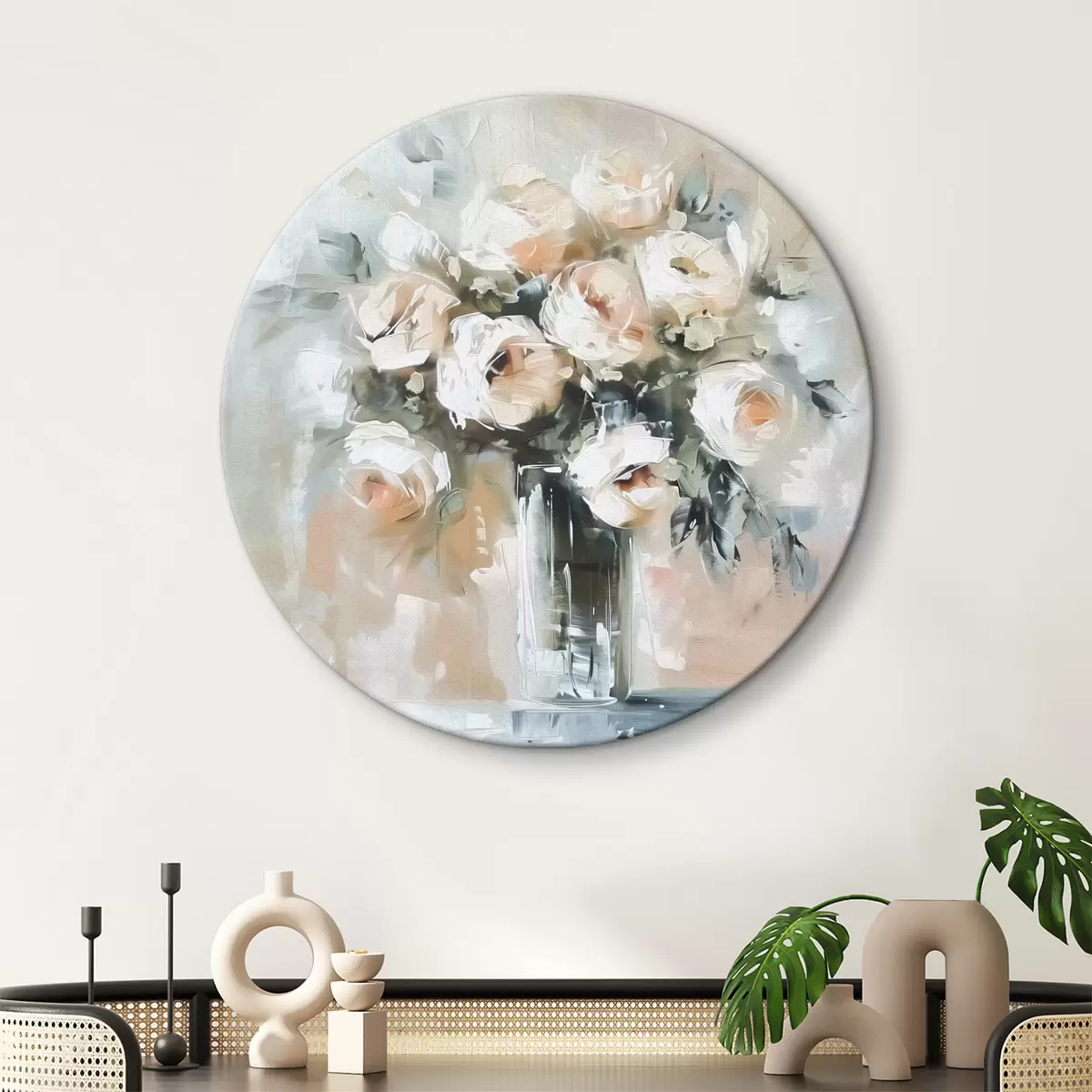 Okrągły obraz Bukiet białych róż Nr r38926