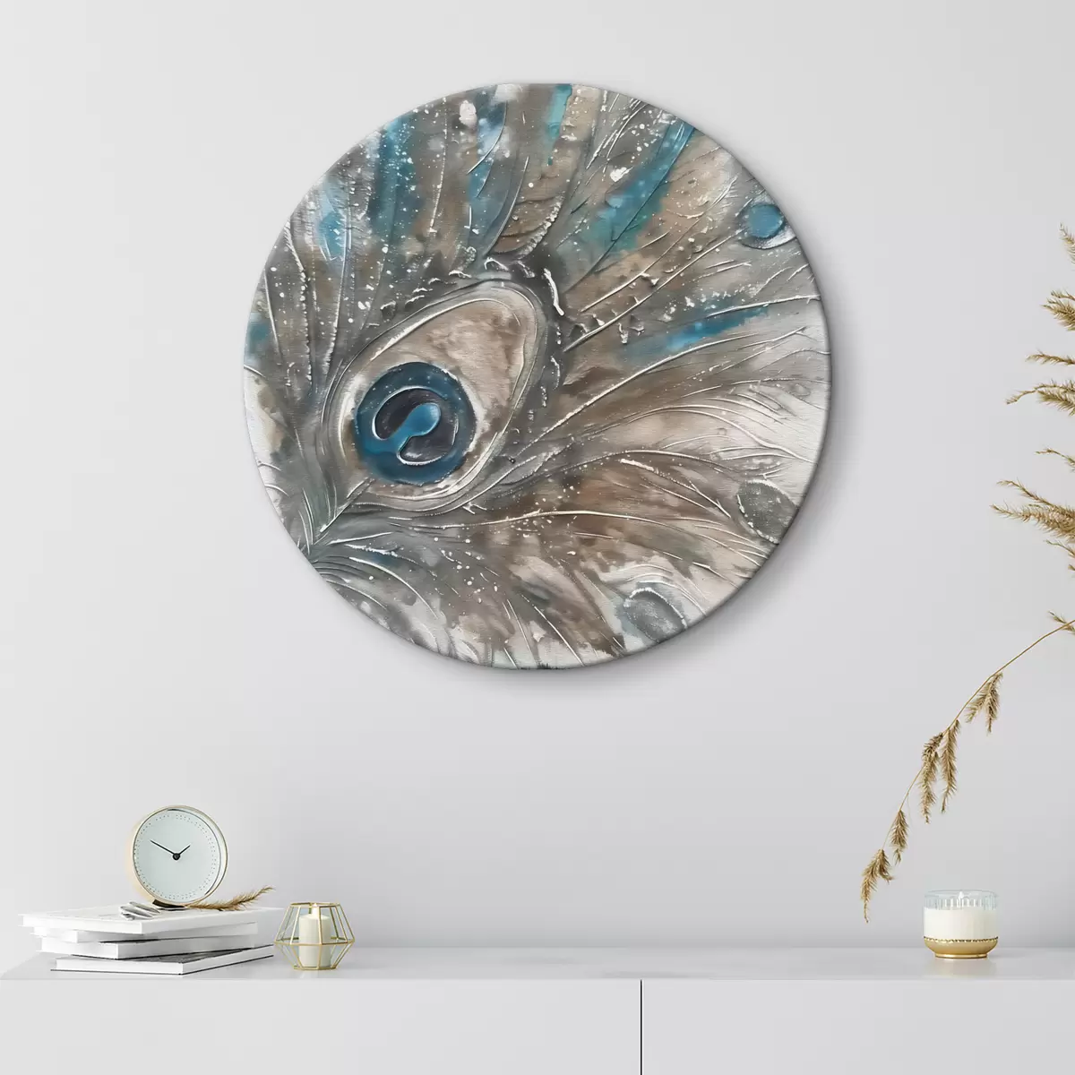 Okrągły obraz Tekstura z nadrukiem dużych pawich piór Nr r38930