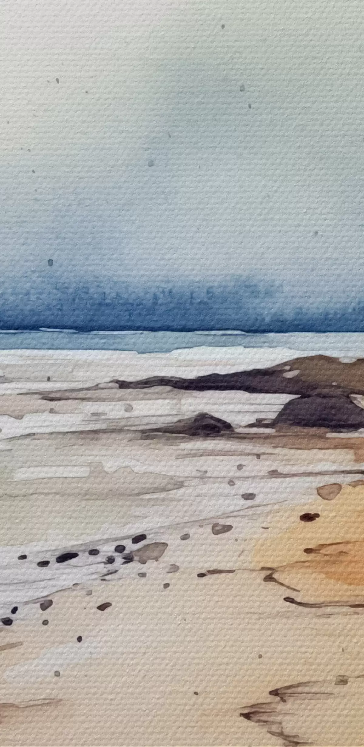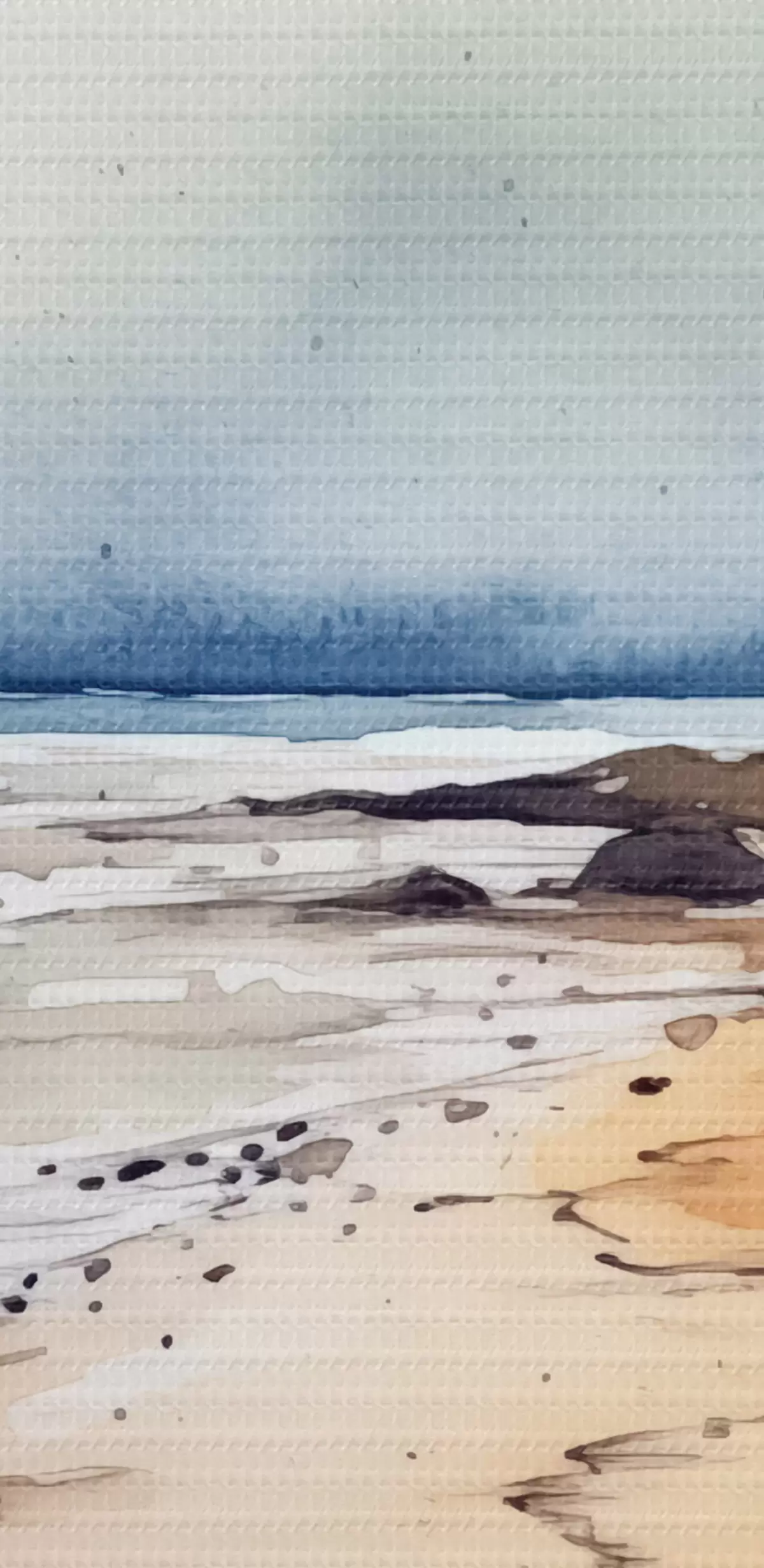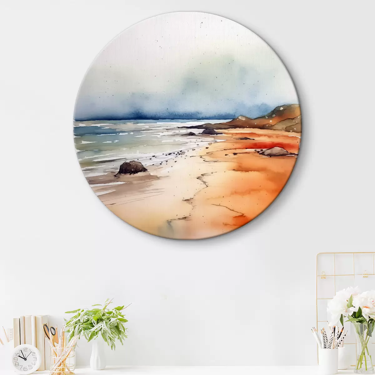 Okrągły obraz Morze i plaża, deszcz, akwarela, plamy, krajobraz, krajobraz, kolor niebieski, pomarańczowy Nr r38936