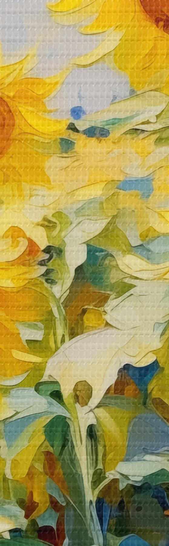Drobny splot nici na tym płótnie przypomina powierzchnię profesjonalnych płócien artystycznych.
