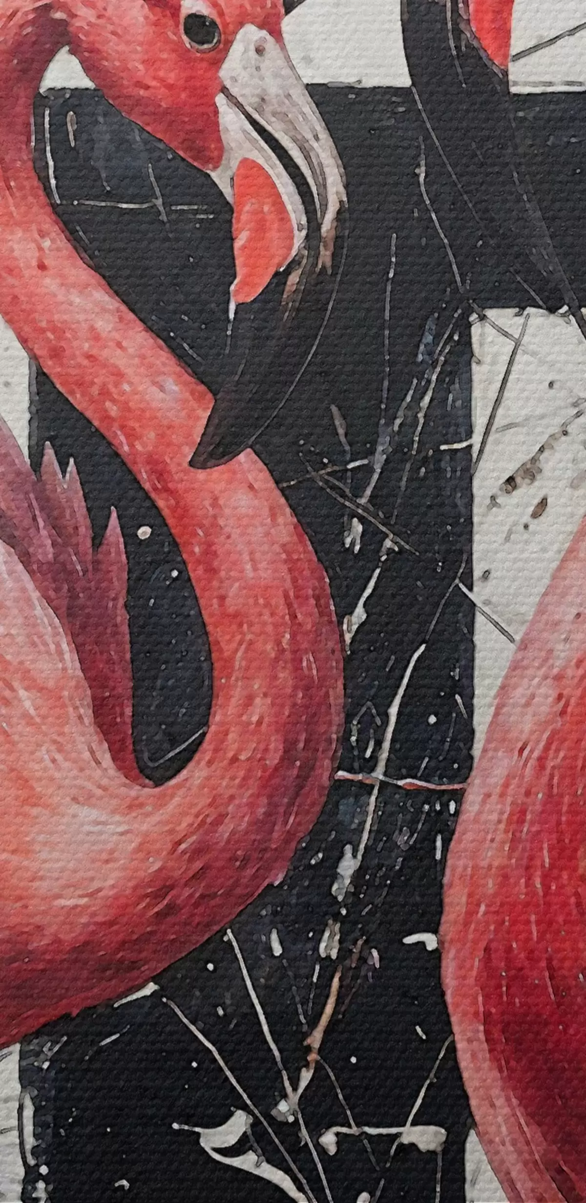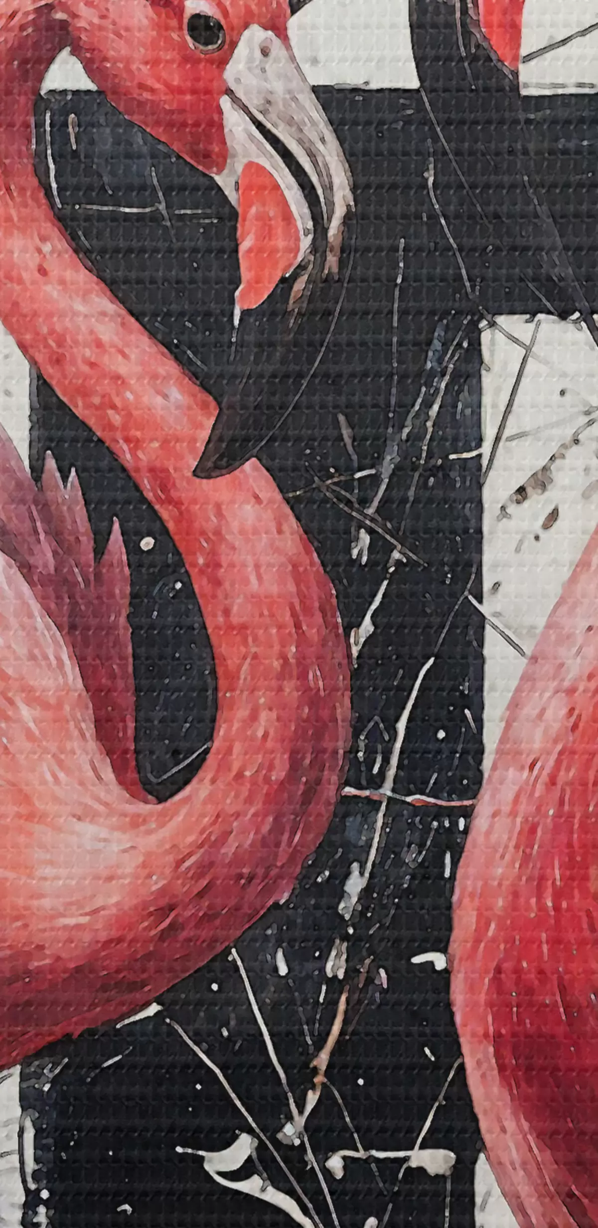 Okrągły obraz Dwa różowe flamingi stojące przed czarno-białym abstrakcyjnym malarstwem artystycznym w tle Nr r38954