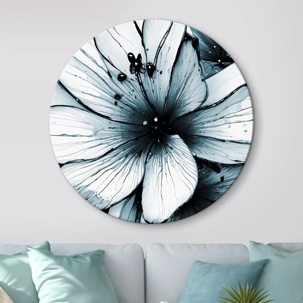 Okrągły obraz Zbliżenie na duże biało-niebieskie kwiaty z delikatnymi płatkami i ciemnym środkiem Nr r38980