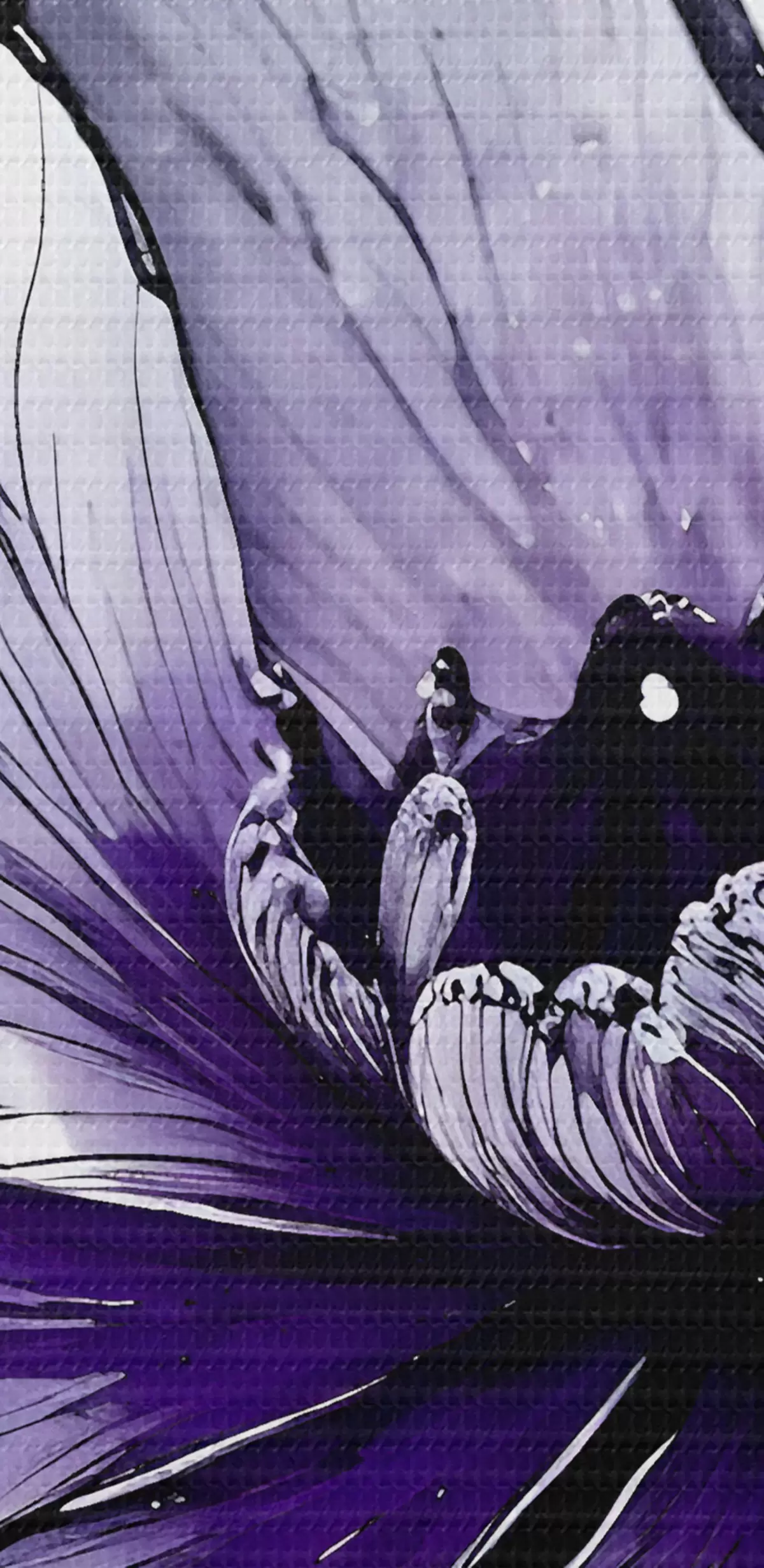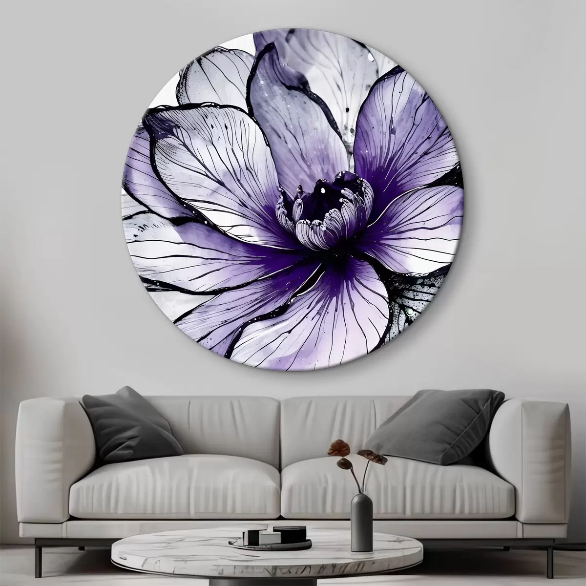 Okrągły obraz Duży, żywy fioletowy kwiat z delikatnymi, misternymi płatkami na ciemnym tle Nr r38982