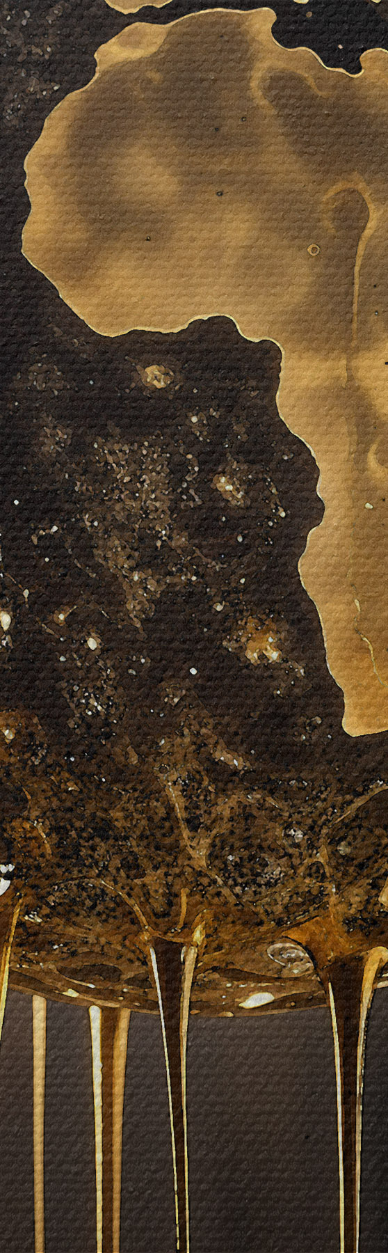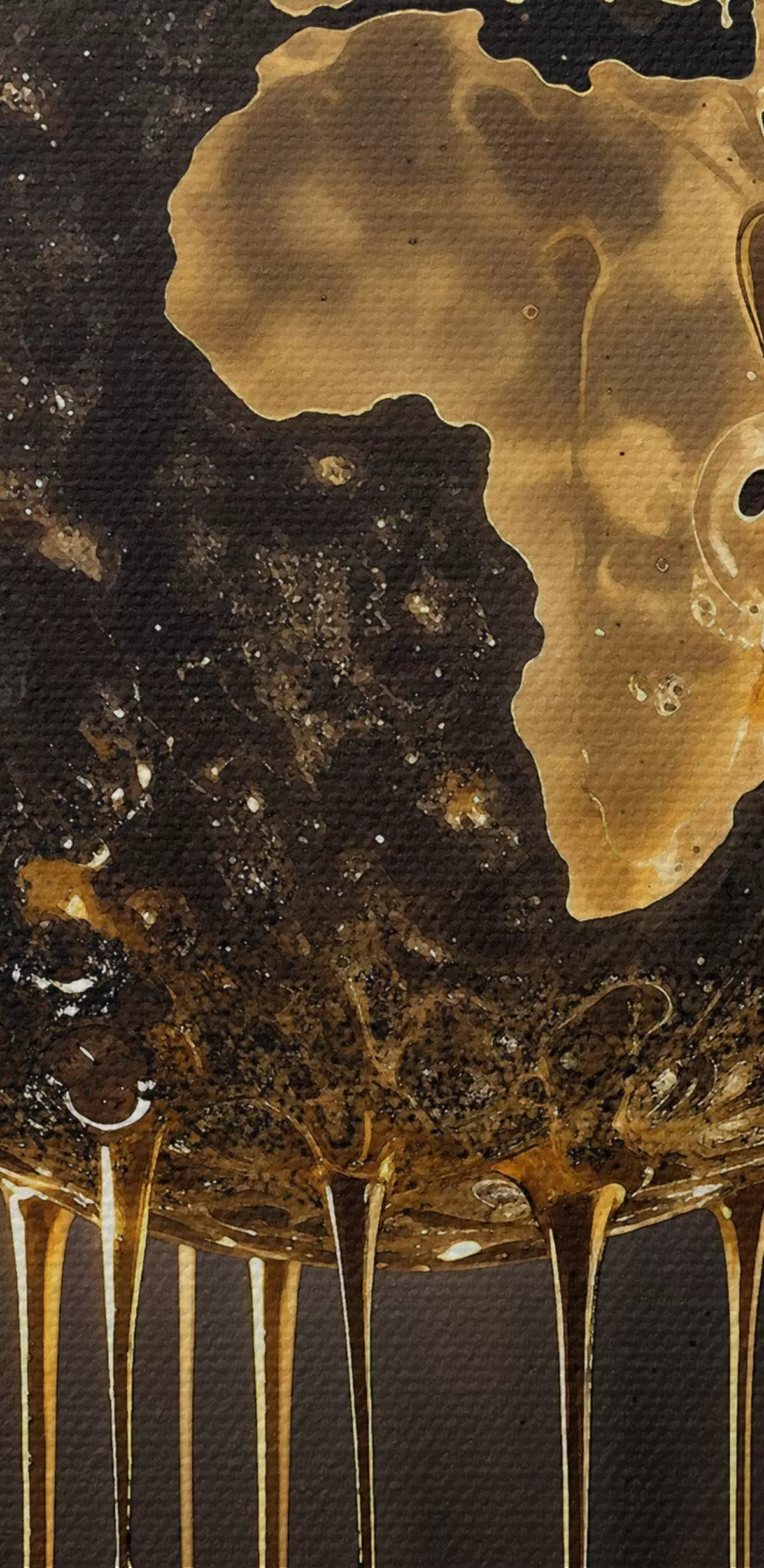 Okrągły obraz Świecąca kula ziemska przedstawiająca Ziemię otoczoną kapiącą cieczą na ciemnym tle Nr r38983