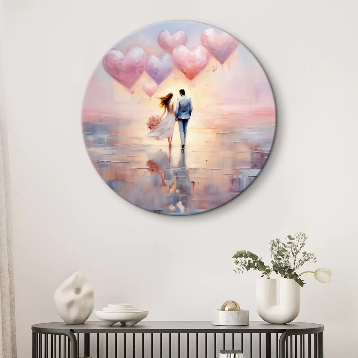 Okrągły obraz Romantyczny spacer pod pływającymi sercami Nr r39017
