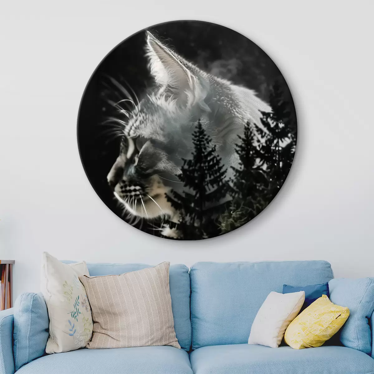 Okrągły obraz Kot z choinkami Nr r39028