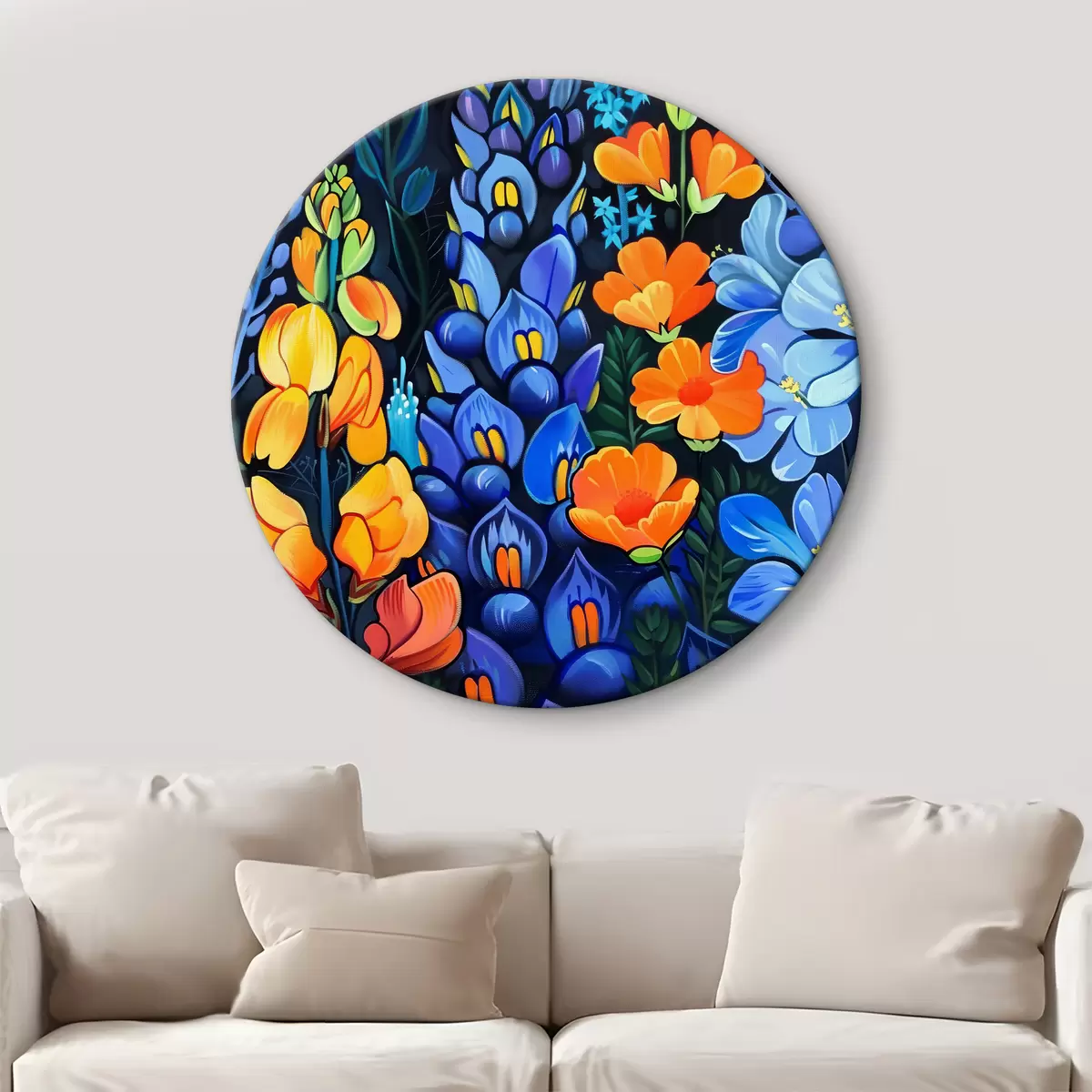 Okrągły obraz Kolorowe kwiaty Nr r39042