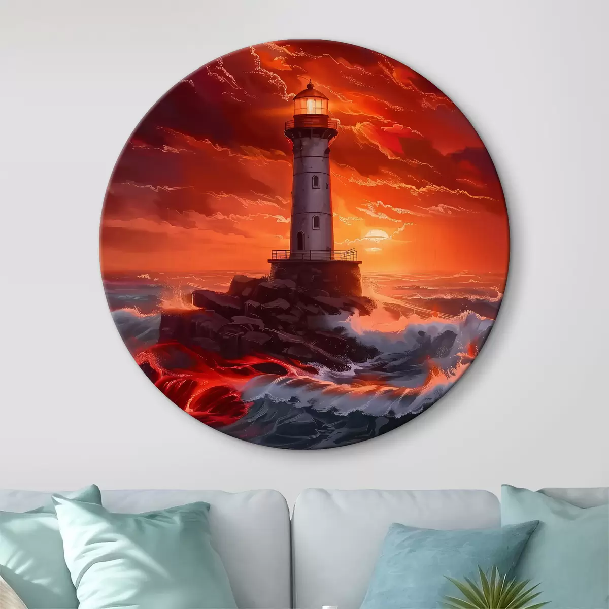 Okrągły obraz Burza wokół latarni morskiej Nr r39050