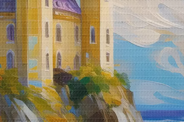 Drobny splot nici na tym płótnie przypomina powierzchnię profesjonalnych płócien artystycznych.