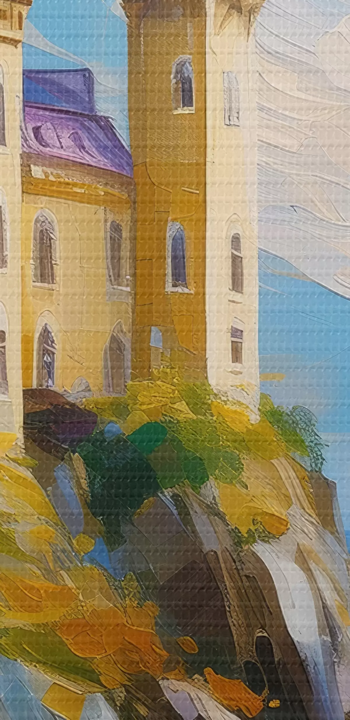 Okrągły obraz Bajkowy zamek na zboczu Nr r39057