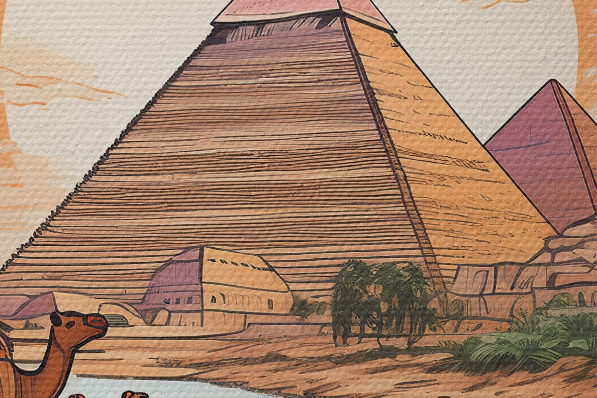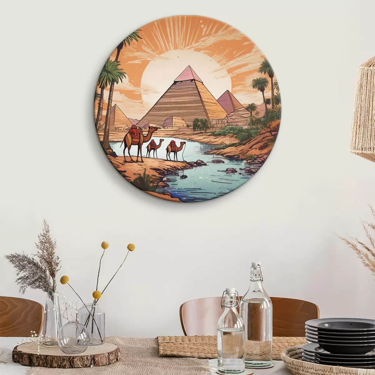 Okrągły obraz Wielbłądy i piramidy Nr r39060