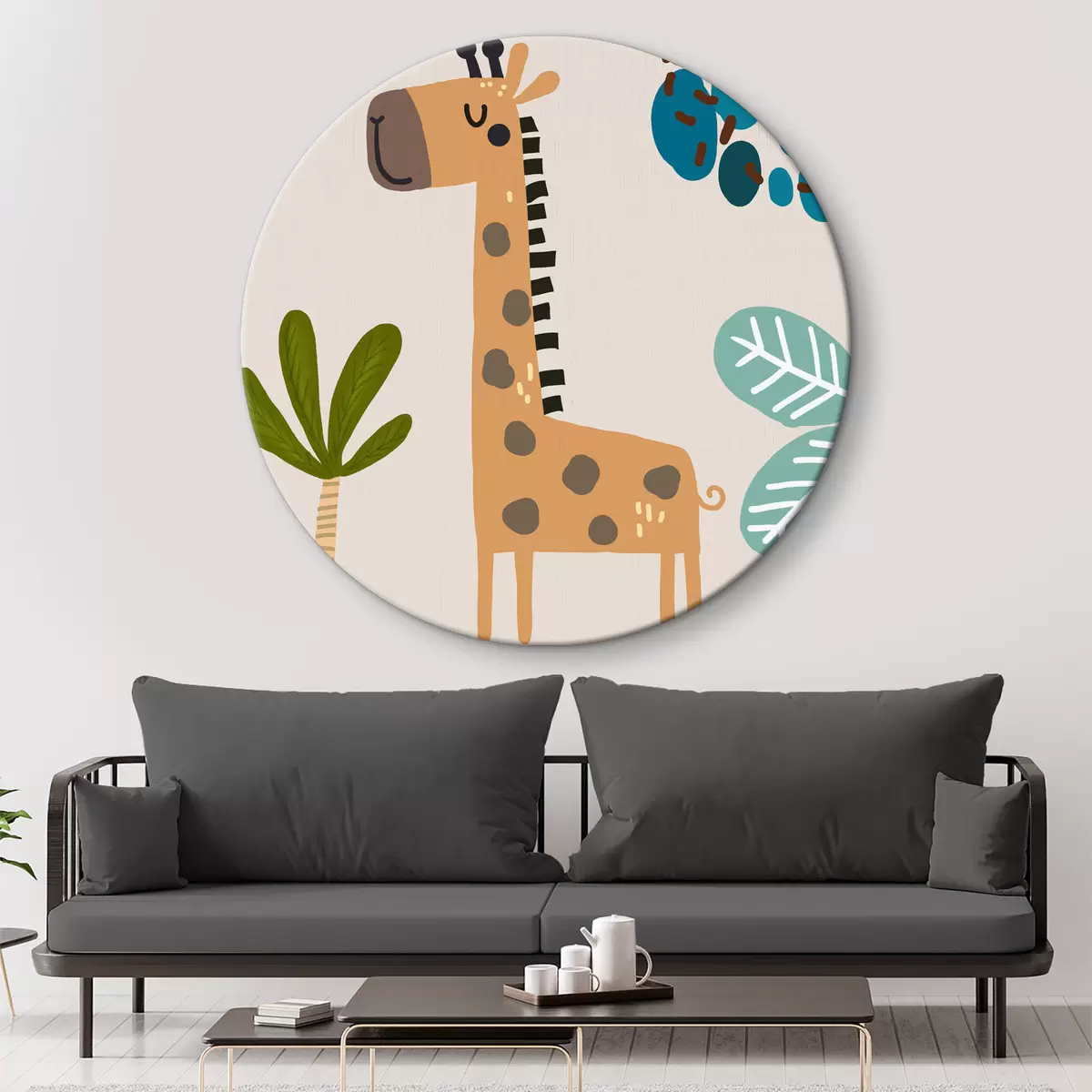 Okrągłe obrazy Żyrafa w dżungli w stylu safari, boho r39096