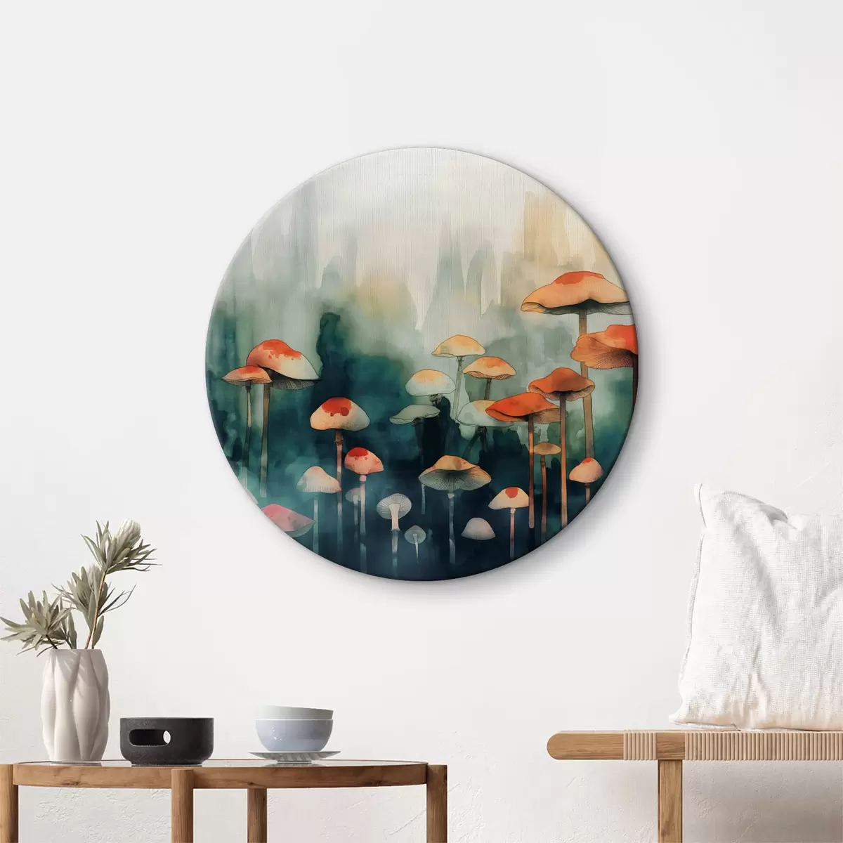 Okrągłe obrazy Grzyby w stylu akwareli r39102