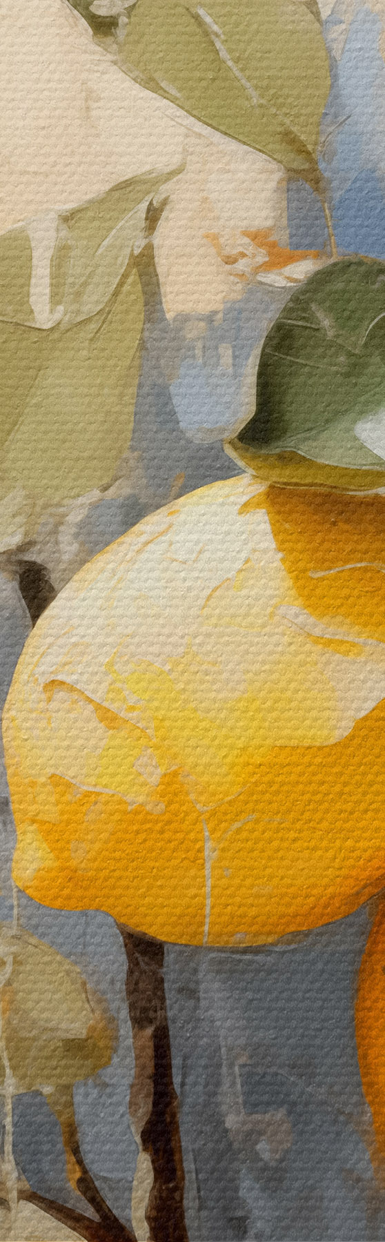 Okrągłe obrazy Gałąź z dojrzałymi cytrynami, obraz olejny, sztuka abstrakcyjna, kolor żółty, niebieski i zielony r39186