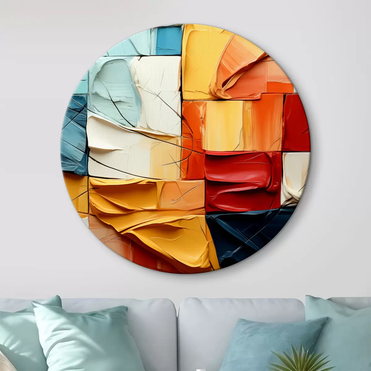 Okrągłe obrazy Kawałki jasnej farby z pęknięciami, kwadratami, malowaniem kubizmu r39196