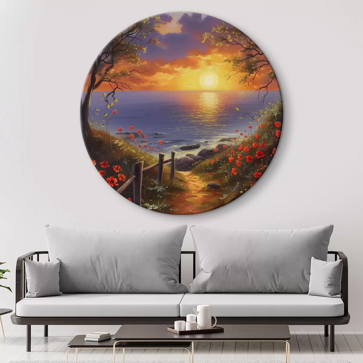 Okrągły obraz Piękny zachód słońca nad wodą Nr r39200