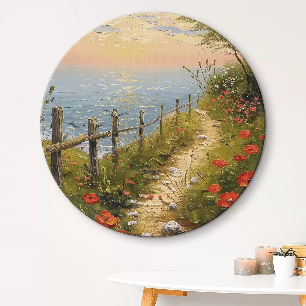 Okrągły obraz Maki wzdłuż ścieżki do wody Nr r39201