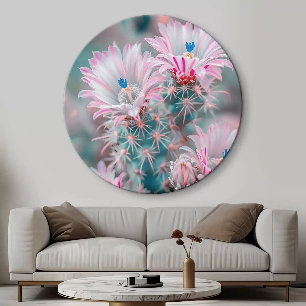 Okrągłe obrazy Różowe kwiaty kaktusa r39212