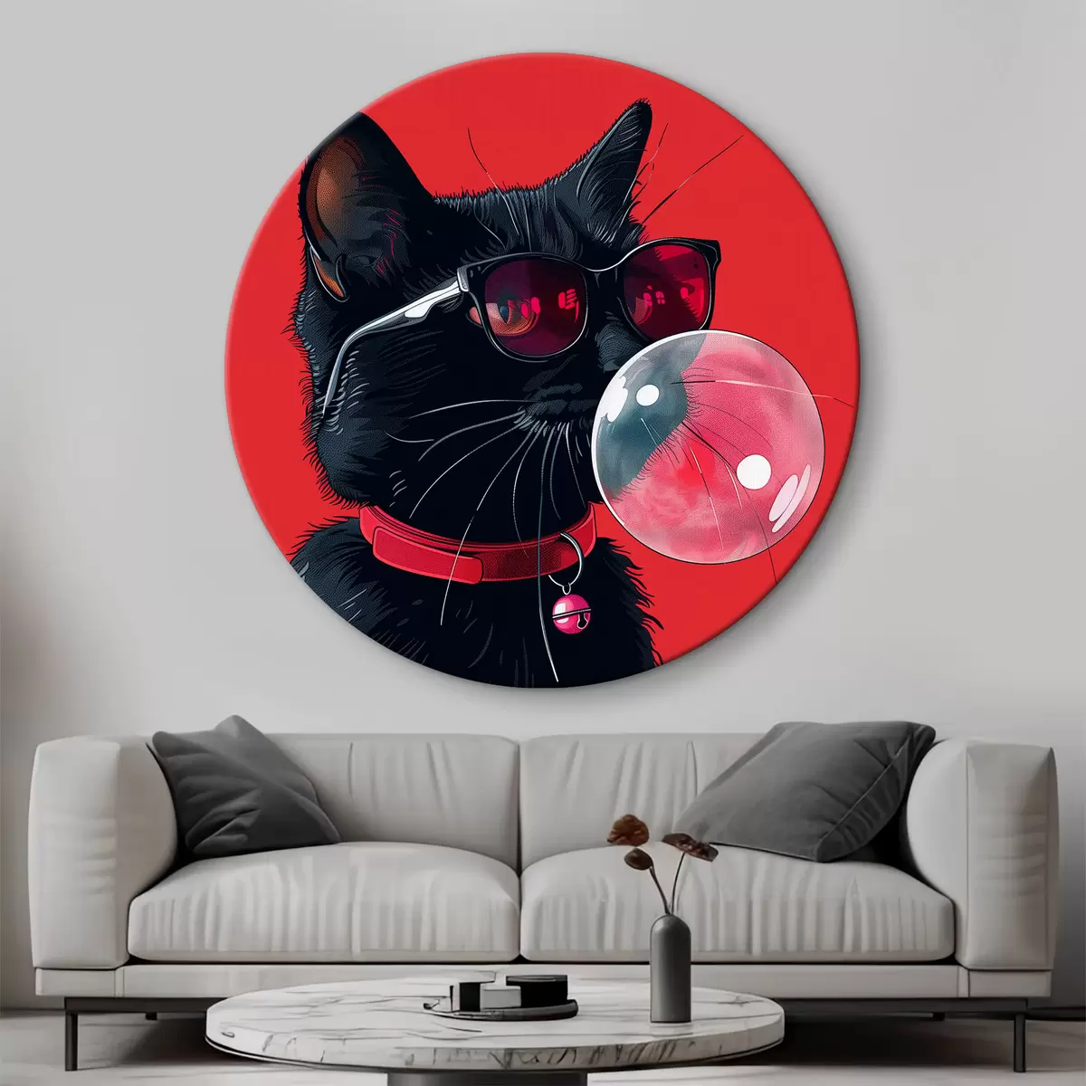 Okrągły obraz Śliczny czarny kot Nr r39223