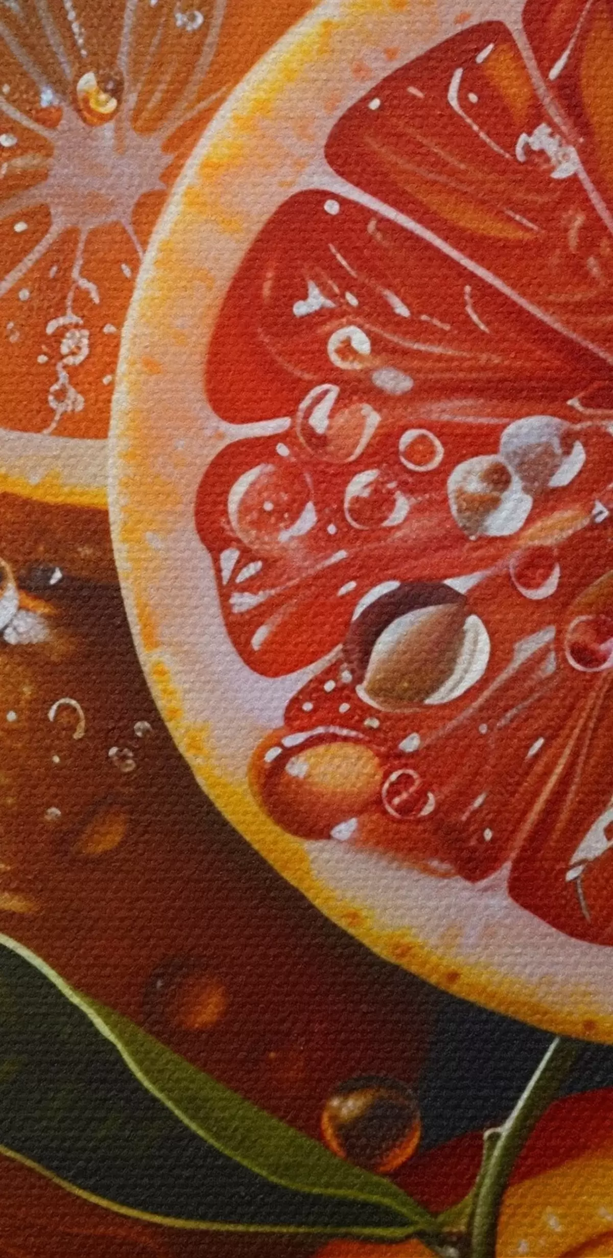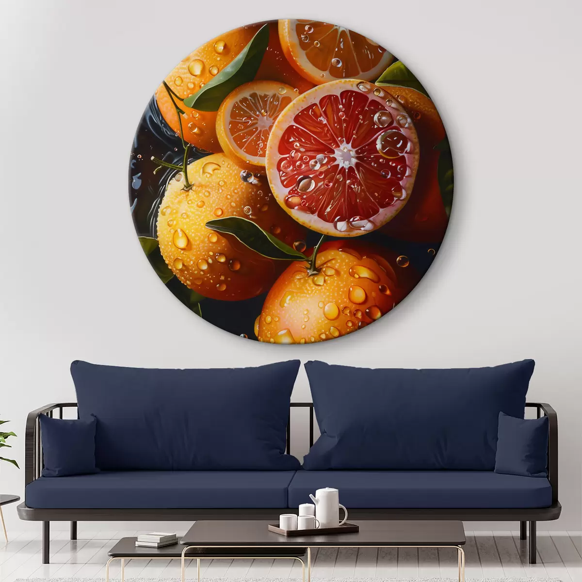 Okrągłe obrazy Pomarańcze i grejpfruty na ciemnym tle r39238