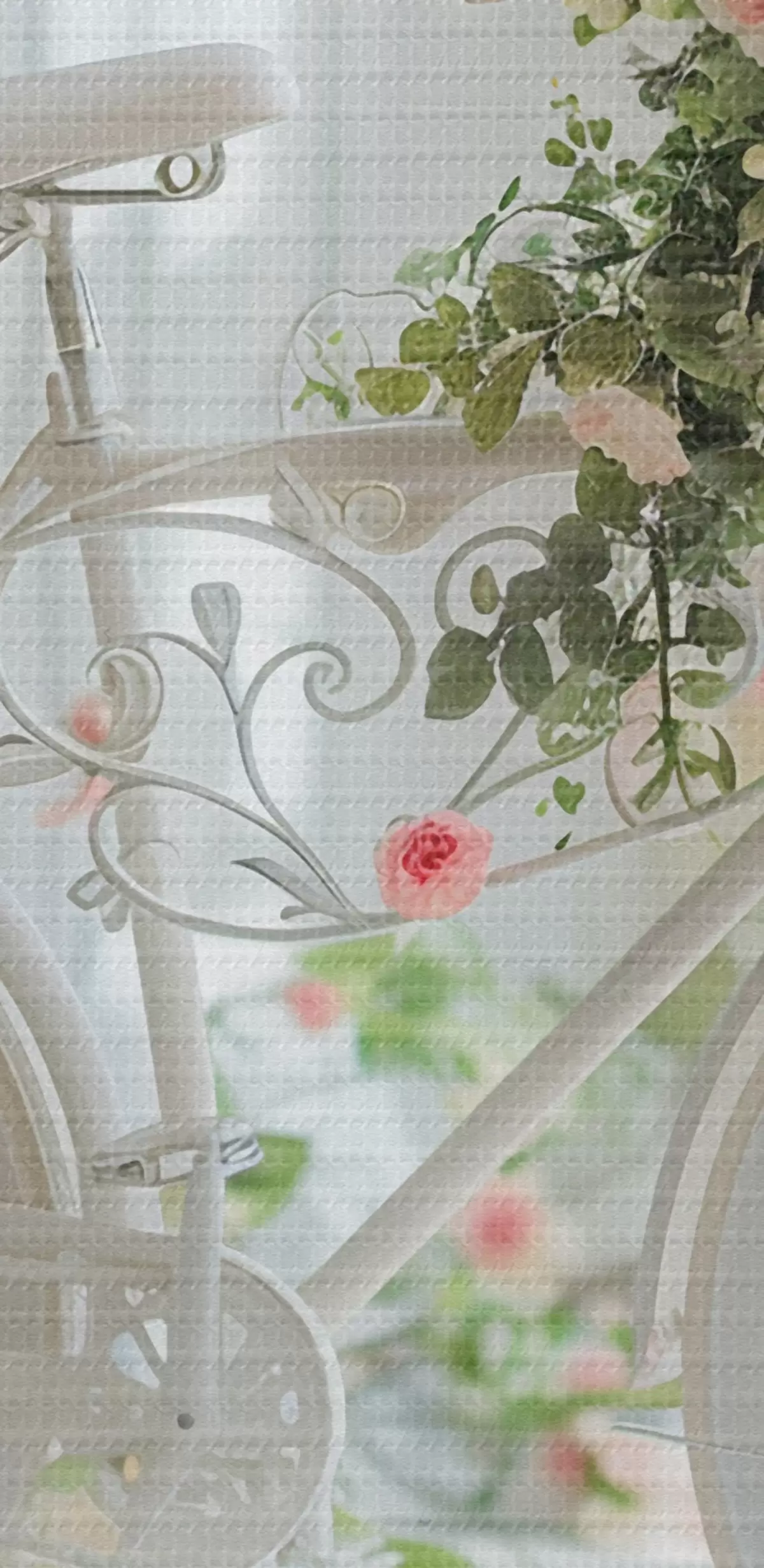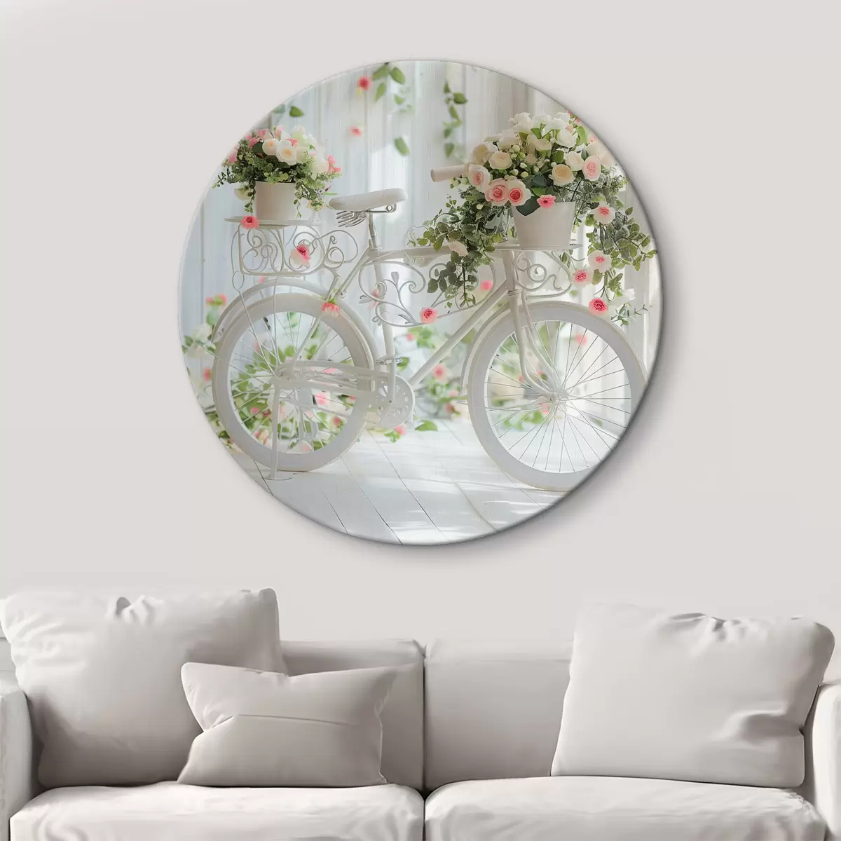 Okrągły obraz Biały rower z koszem kwiatów w stylu prowansalskim Nr r39243