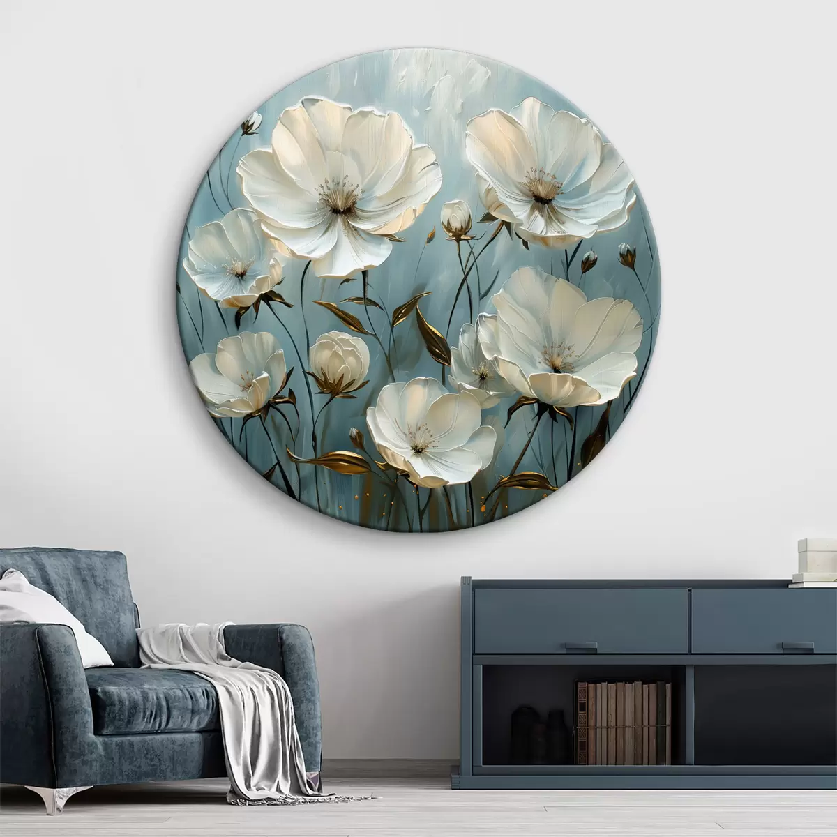 Okrągły obraz Białe kwiaty na niebieskim tle Nr r39246