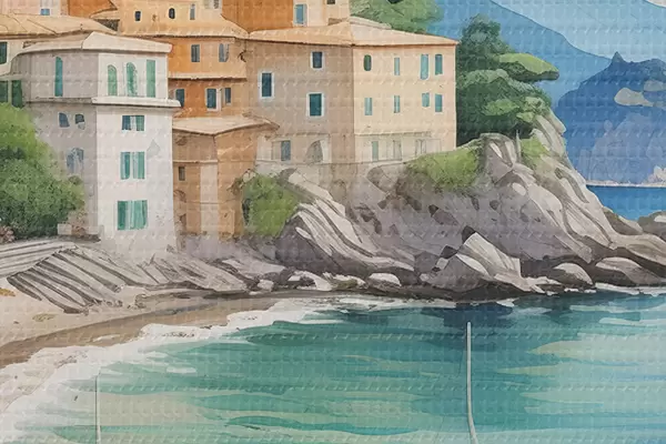 Okrągły obraz miasteczko nad morzem latem Nr r39299
