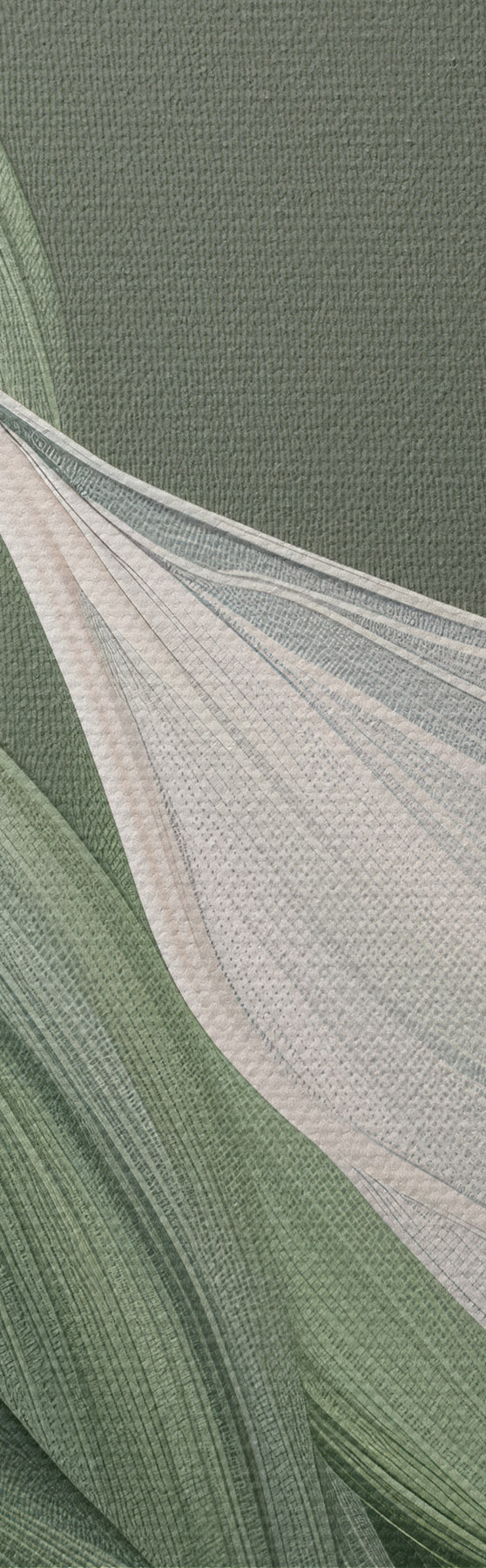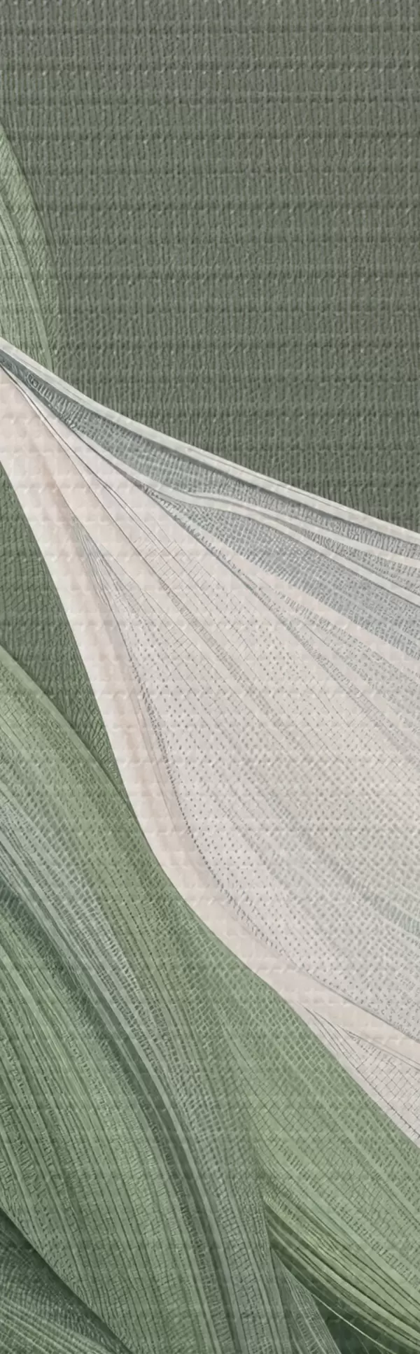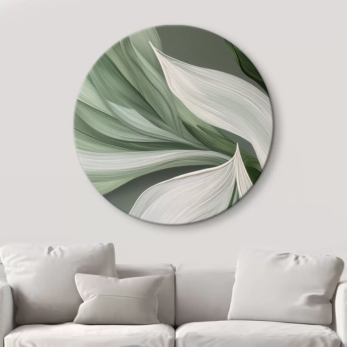 Okrągły obraz obszerny abstrakcyjny welon w kolorach białym i zielonym Nr r39327