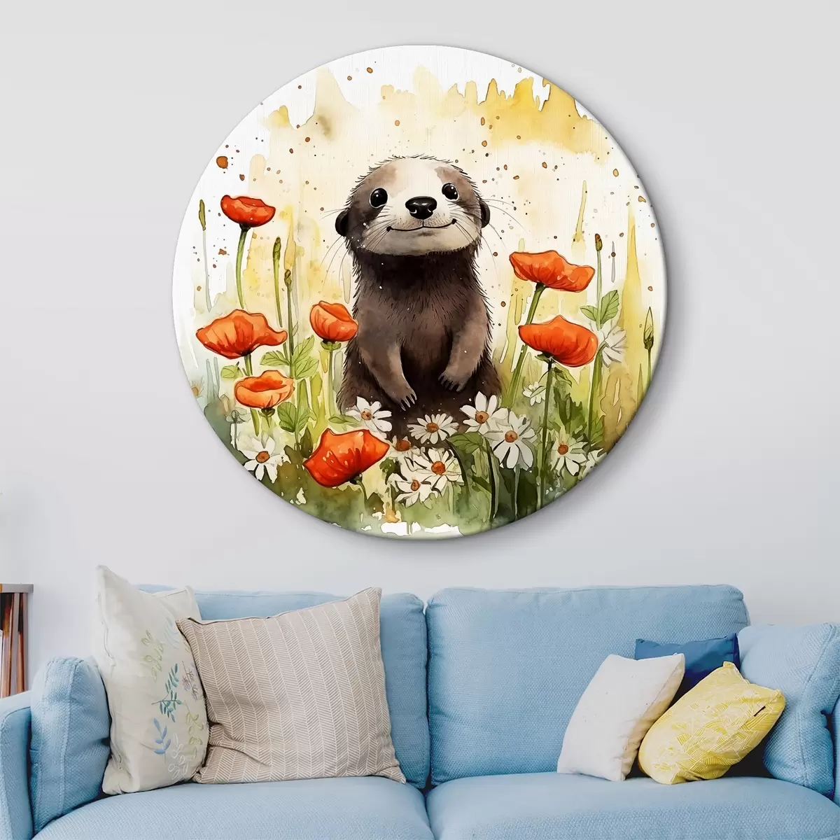 Okrągły obraz Mały kret siedzący na akwarelowej ilustracji dla dzieci maki Nr r39337
