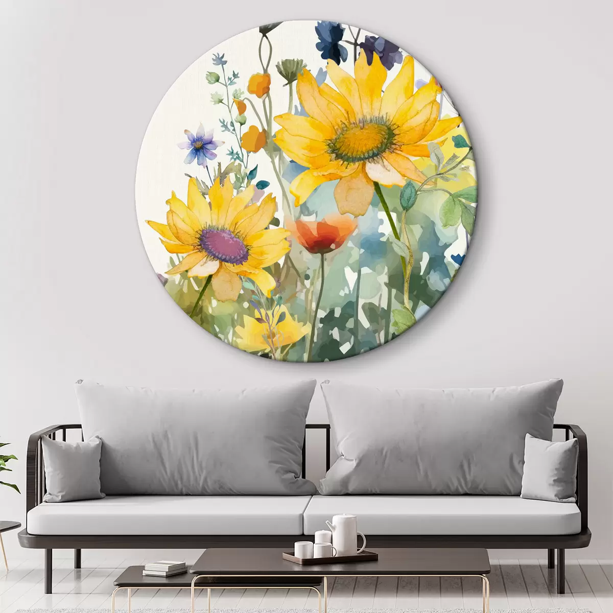 Okrągły obraz Kolorowe akwarelowe dzikie kwiaty Nr r39338