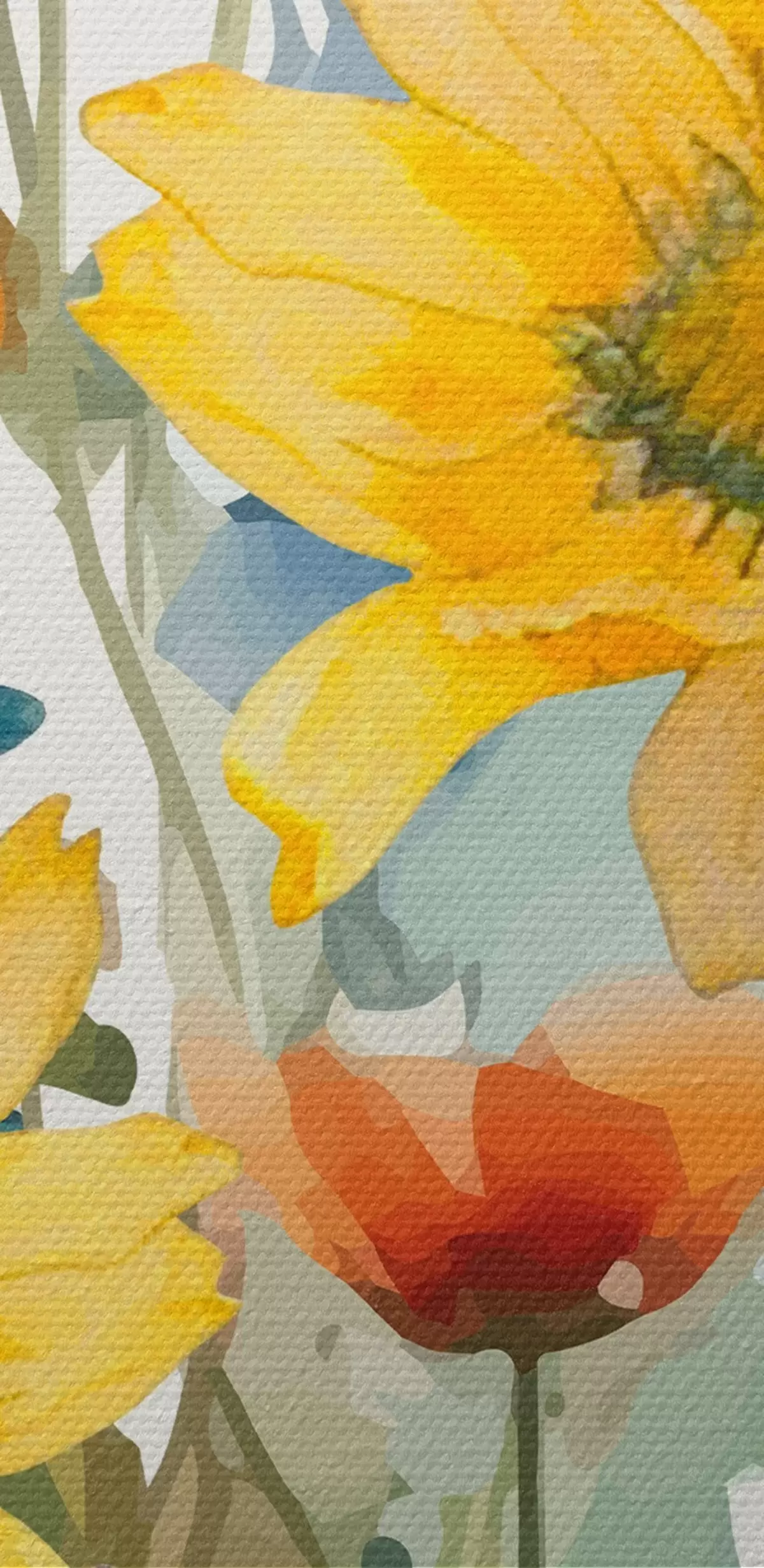 Do zamówienia dostępne są trzy rodzaje materiału: Economic Canvas - gęsty i trwały materiał do druku cyfrowego, identyczny z płótnem malarskim, wodoodporna powierzchnia, realistyczne odwzorowanie szczegółów, materiał średnioziarnisty. Premium Canvas - tekstura przypominająca płótno malarskie (przeplatane drobne nitki). Miękka, szczegółowa reprodukcja obrazu na matowej powierzchni. Eco-Premium - wysokiej jakości tkanina w 100% bawełniana. Dzięki naturalnym włóknom bawełnianym materiał jest trwały i odporny na zużycie. Doskonałe odwzorowanie kolorów i szczegółów.