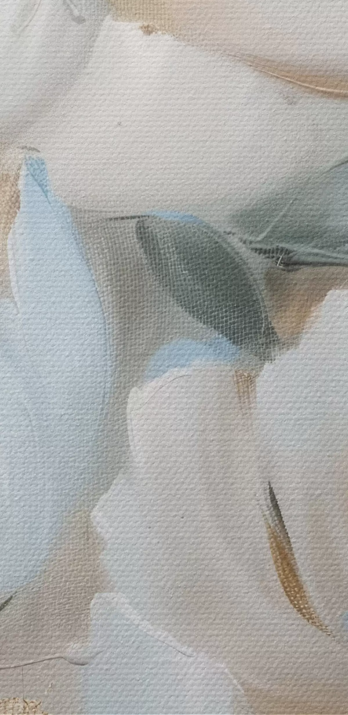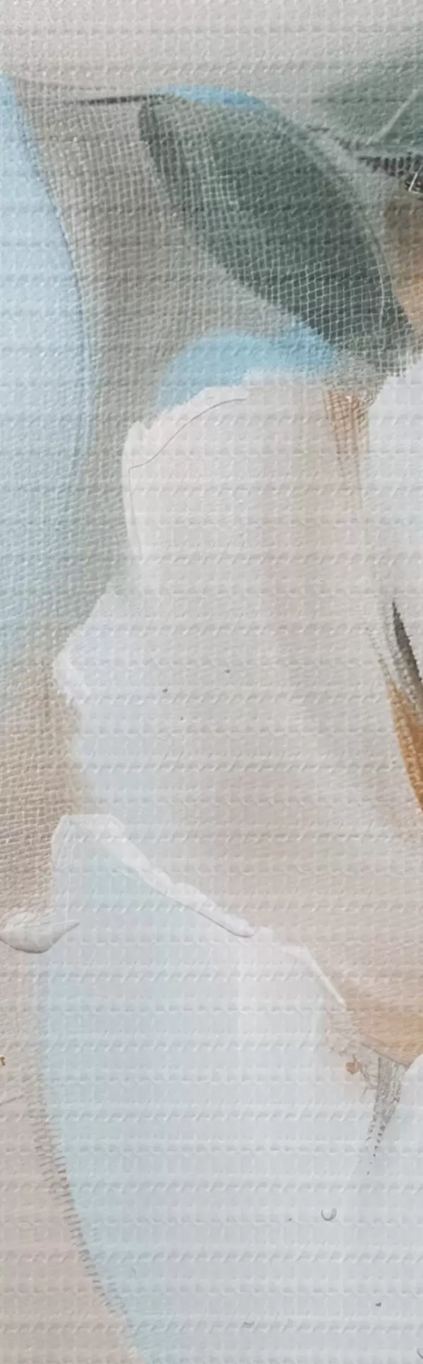 Drobny splot nici na tym płótnie przypomina powierzchnię profesjonalnych płócien artystycznych.