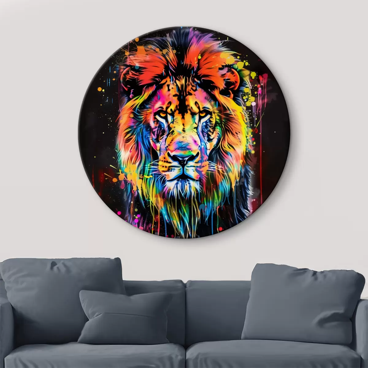 Okrągłe obrazy Lew w farbie r39356