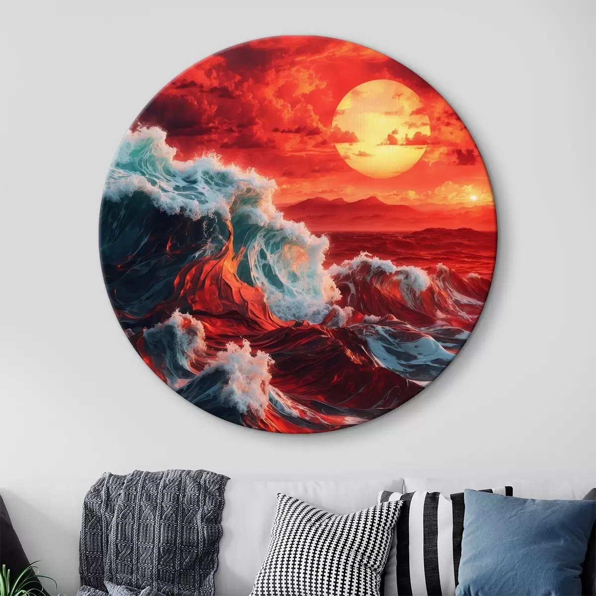 Okrągły obraz Burzliwe morze o zachodzie słońca Nr r39362