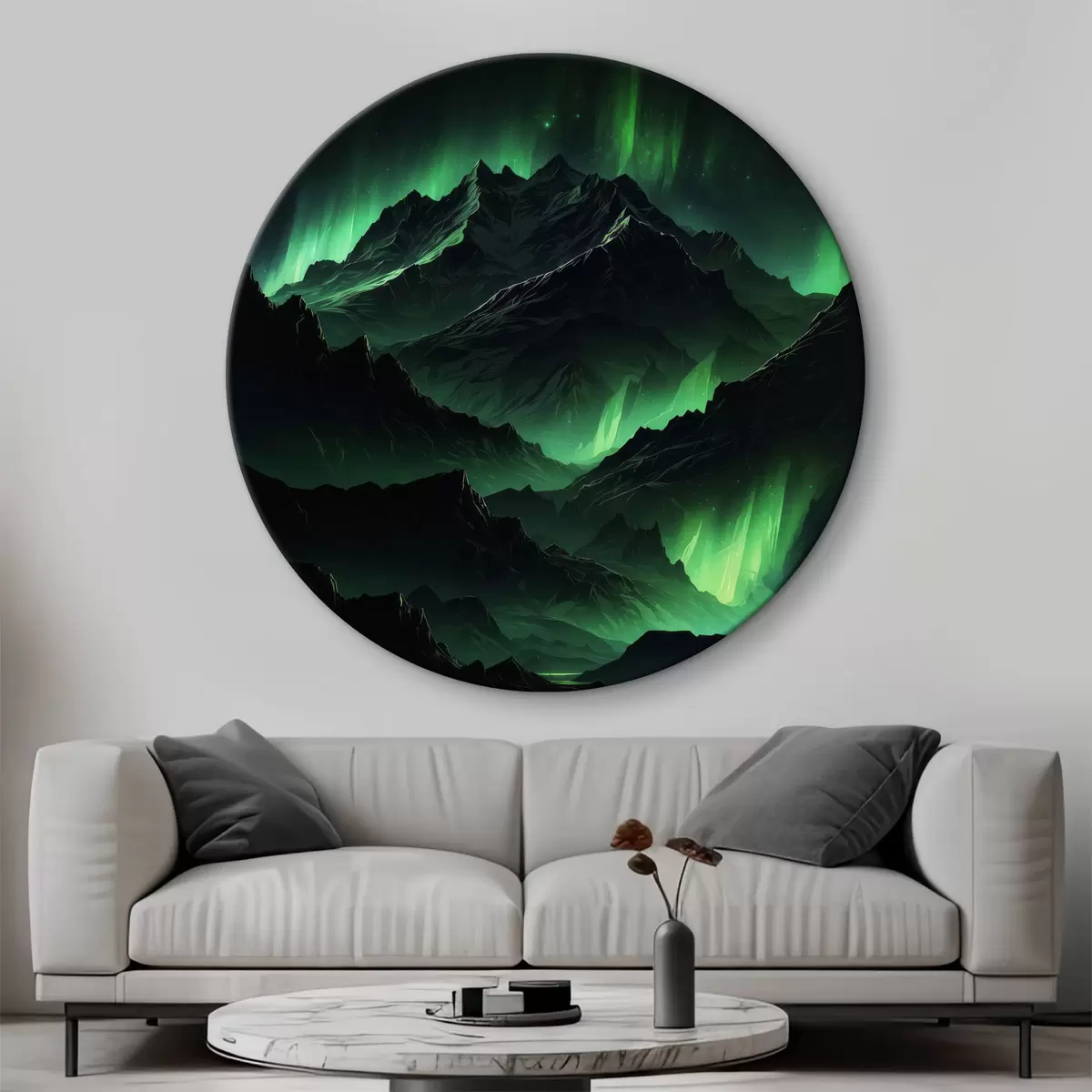 Okrągły obraz Czarne góry oświetlone zorzą polarną Nr r39363