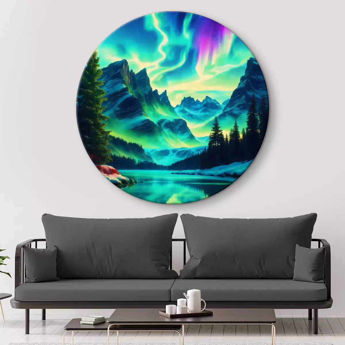Okrągły obraz Zorza polarna nad górami Nr r39365