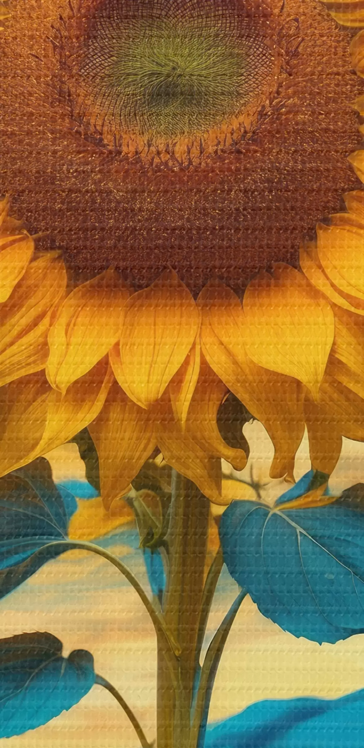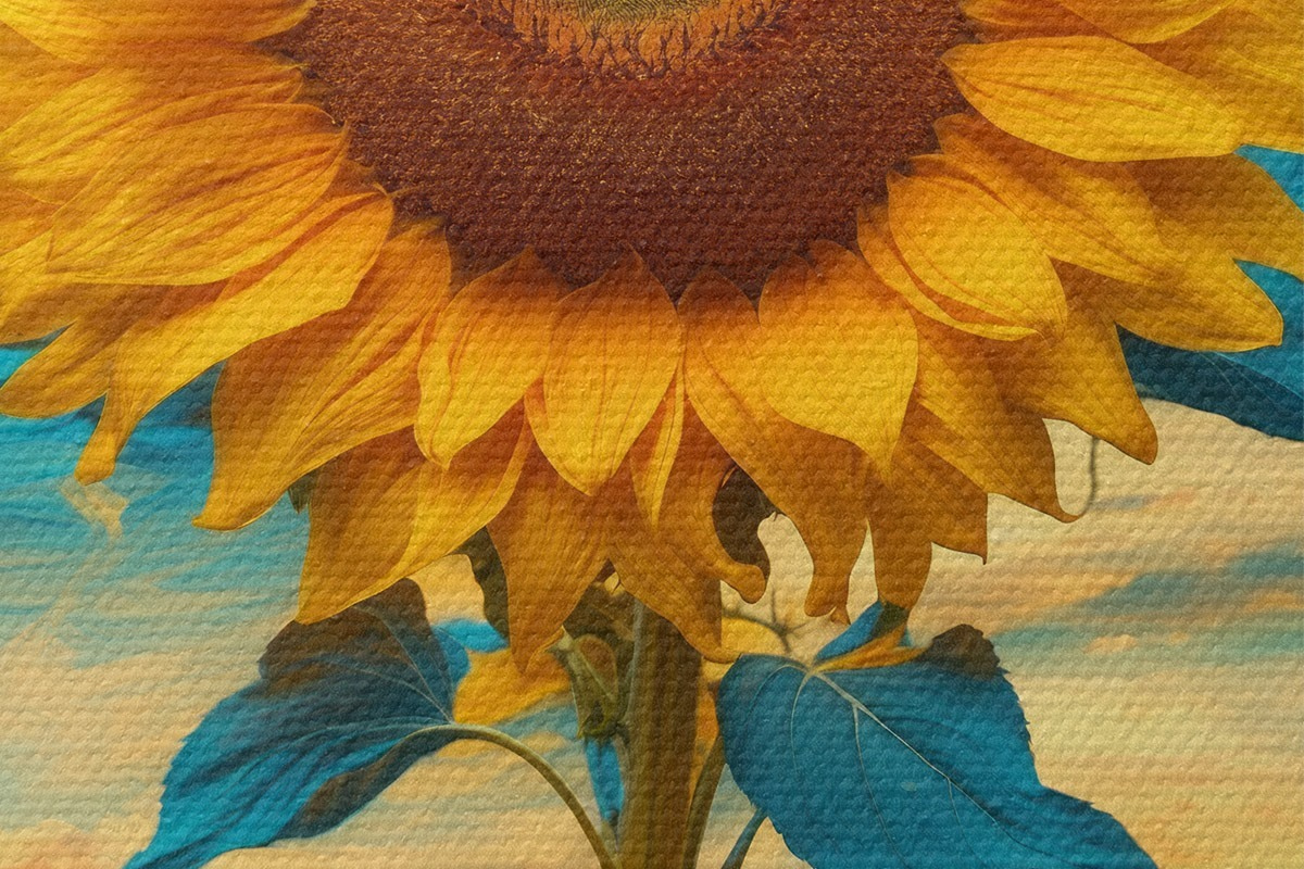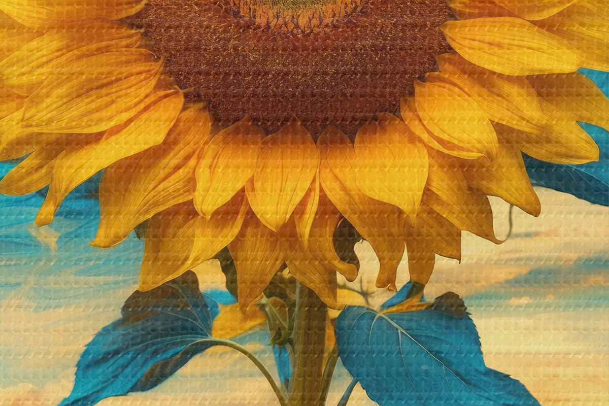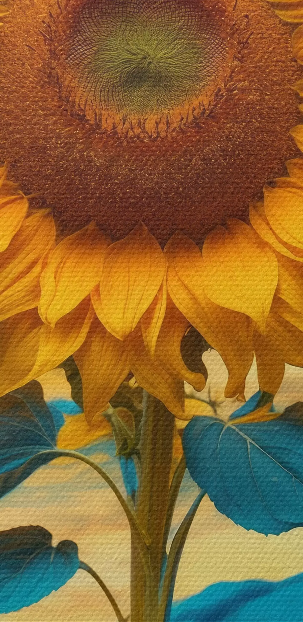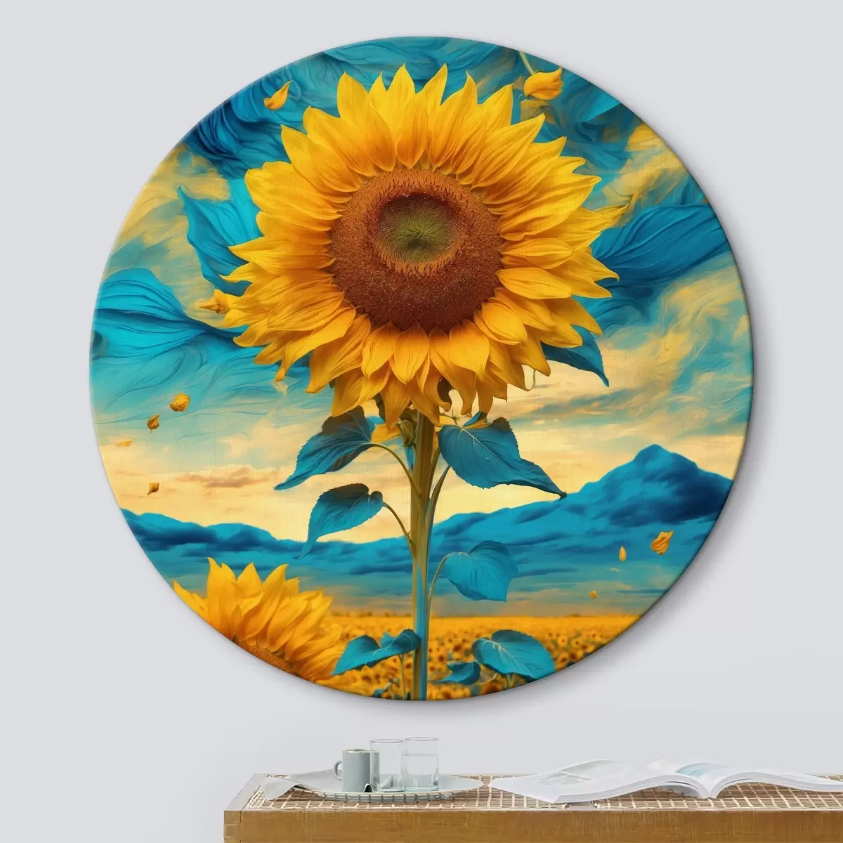 Okrągły obraz Pole słoneczników nad abstrakcyjnym niebem Nr r39367
