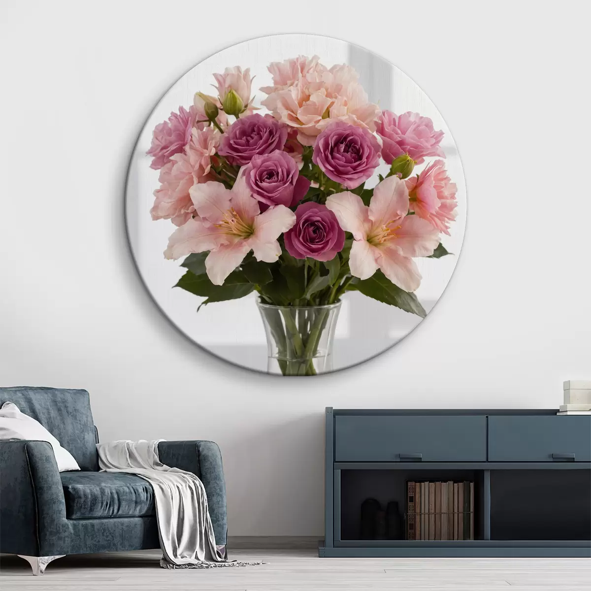 Okrągły obraz Kwiaty w wazonie na stole Nr r39369