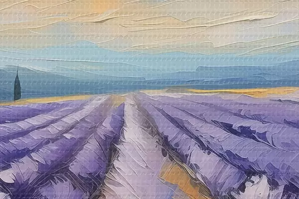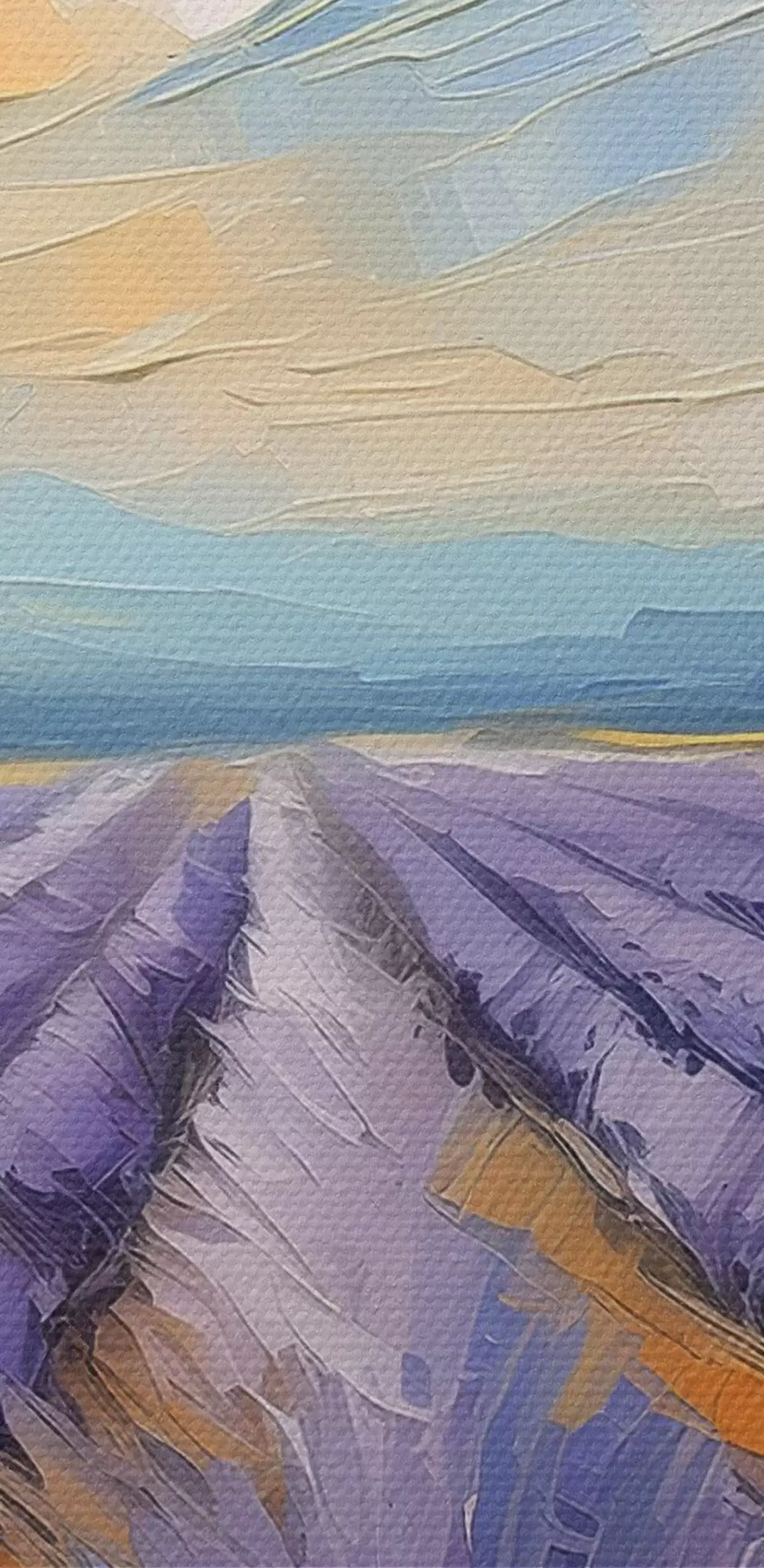Okrągły obraz Pole lawendy, letnie krajobrazy, fioletowe kwiaty, obraz olejny, piękne niebo Nr r39414