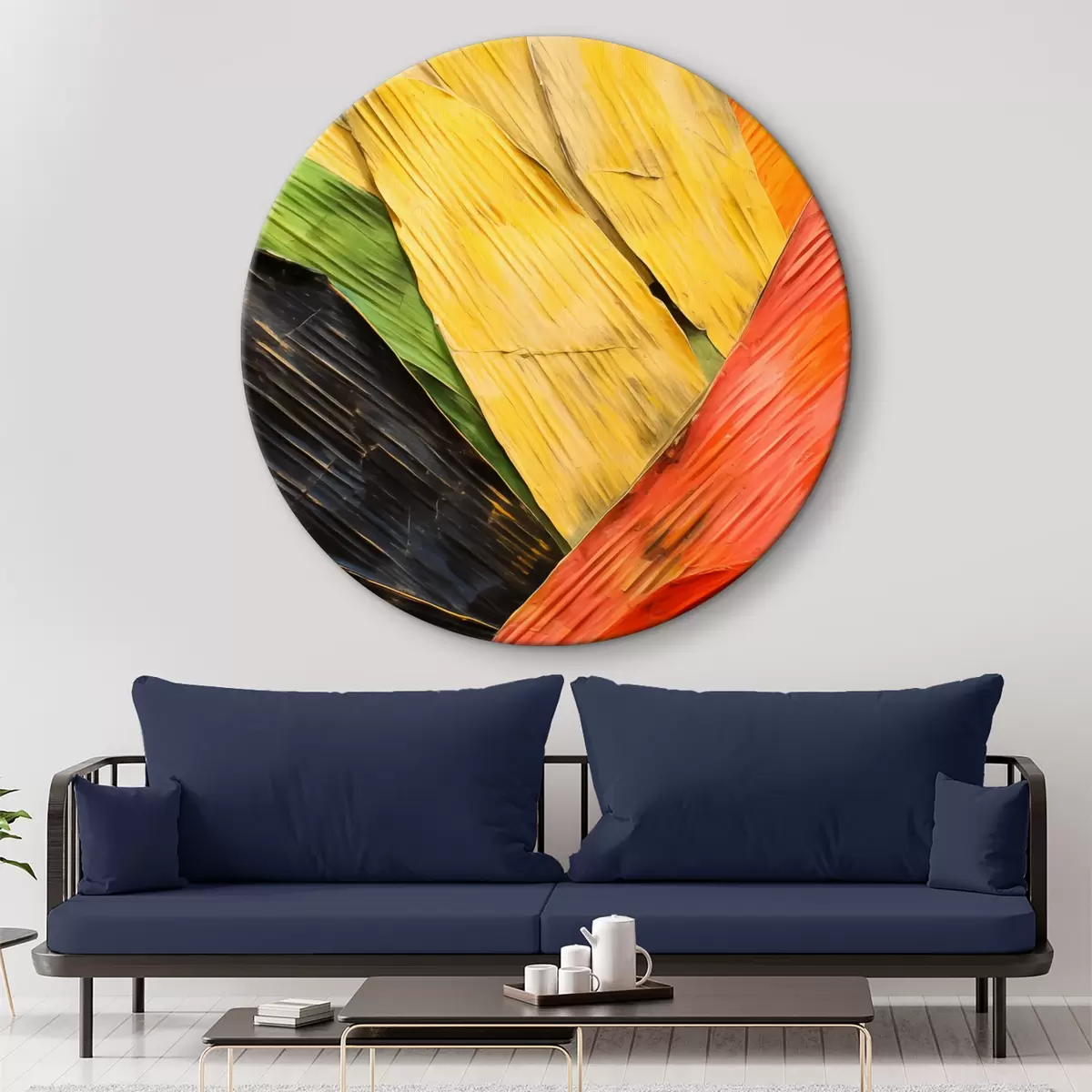Okrągły obraz Abstrakcyjny obraz olejny z fakturą i rowkami, kolor żółty, zielony, czerwony, czarny Nr r39429