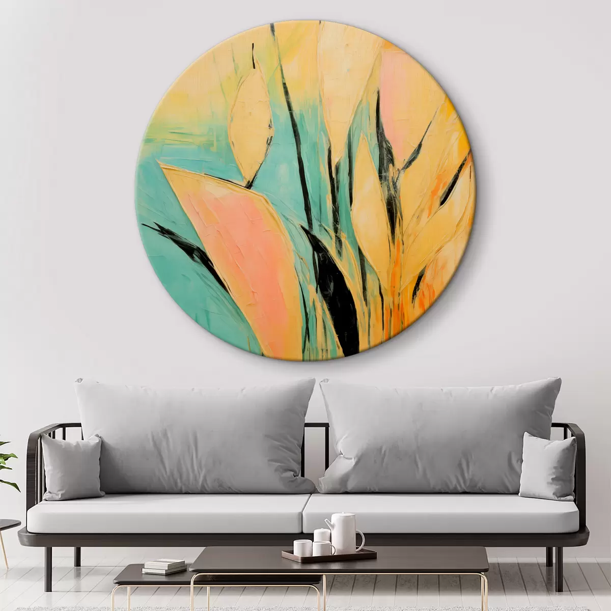 Okrągłe obrazy Sztuka abstrakcyjna kłosy obrazu olejnego pszenicy, kolor niebieski, żółty, czerwony r39431