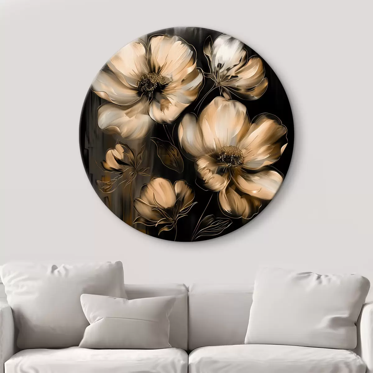 Okrągłe obrazy Kwiaty na czarnym tle r39446