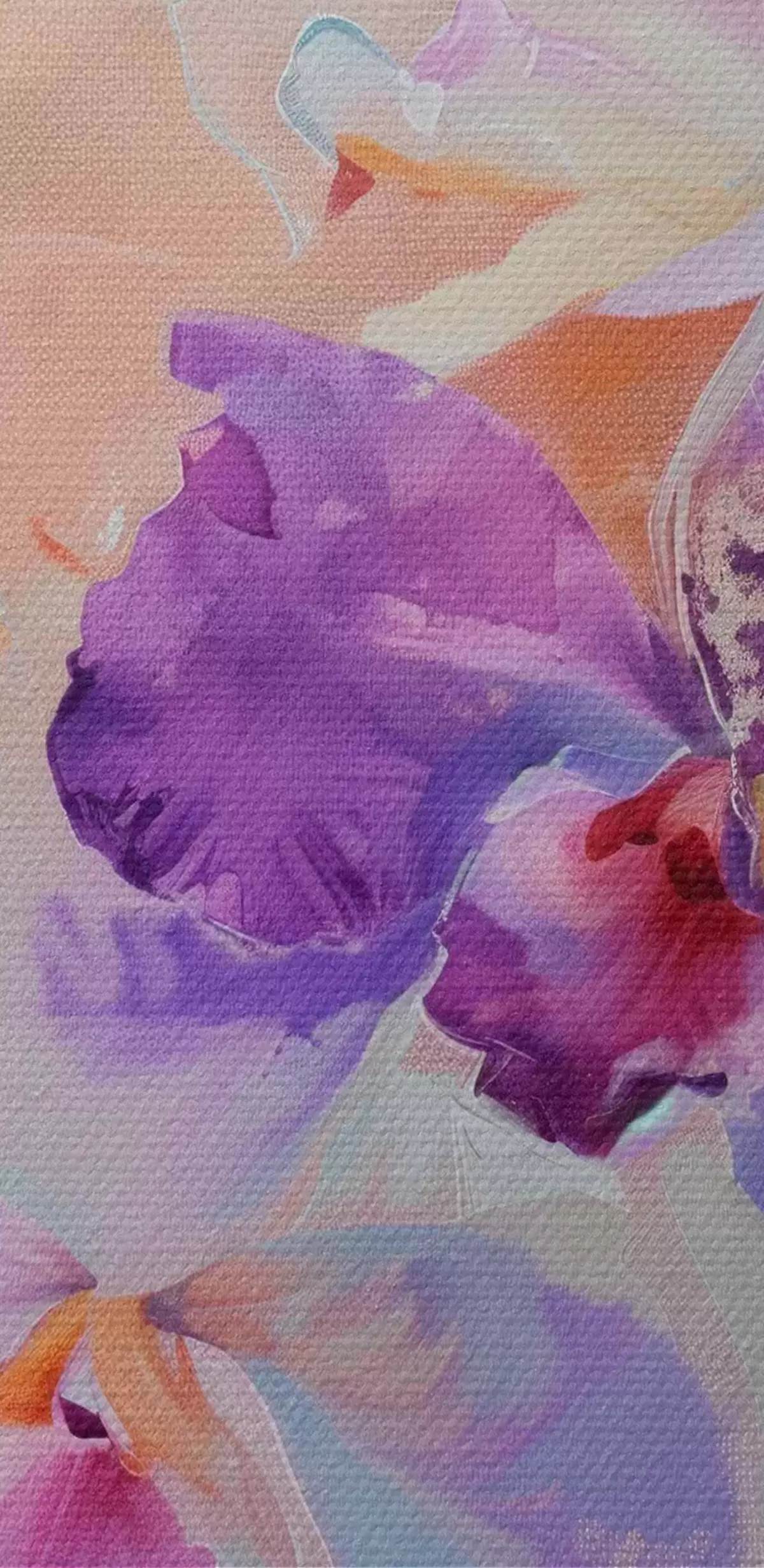 Okrągły obraz Impresjonistyczny obraz orchidei, jasne pastelowe kolory, półabstrakcyjny nadruk botaniczny z neutralnym tłem Nr r39463