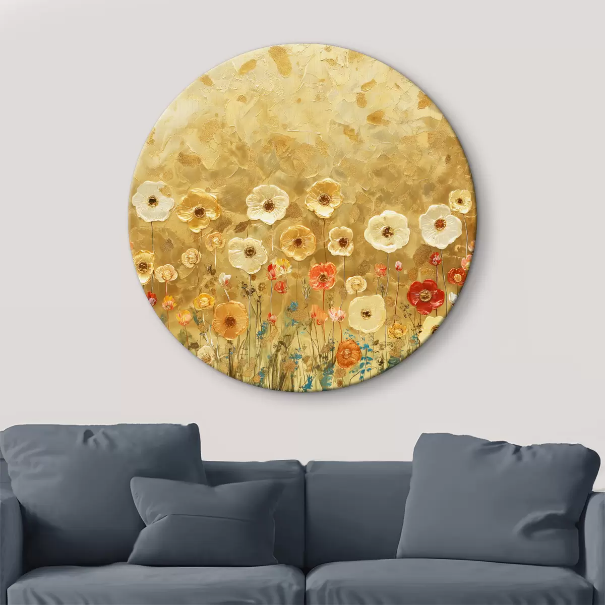 Okrągły obraz łąka w stylu klimt: delikatne pastelowe kwiaty o roztopionej fakturze Nr r39464