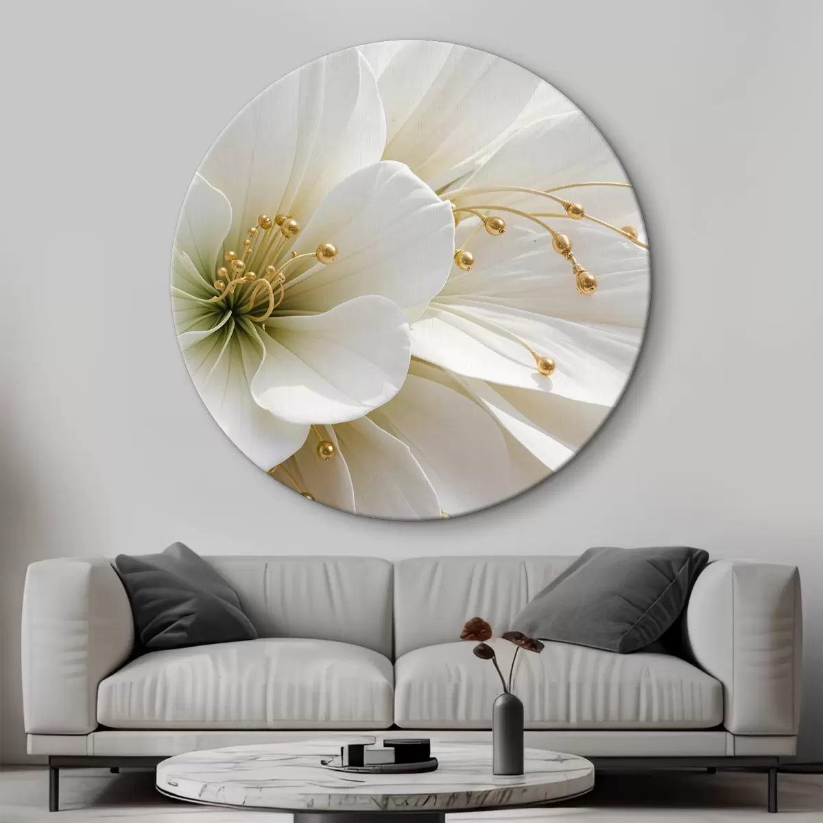 Okrągły obraz Duży biały kwiat Nr r39507